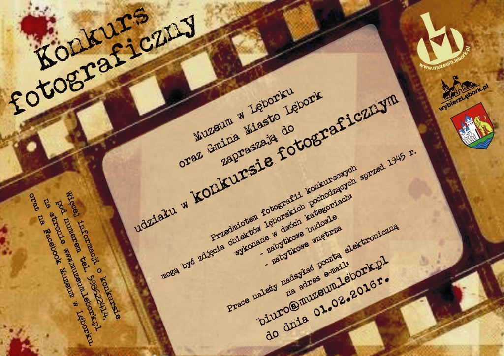 Muzeum w Lęborku oraz Gmina Miasto Lębork zapraszają do udziału w konkursie fotograficznym. Przedmiotem fotografii konkursowych mogą być zdjęcia obiektów lęborskich pochodzących sprzed 1945 r. wykonane w dwóch kategoriach: