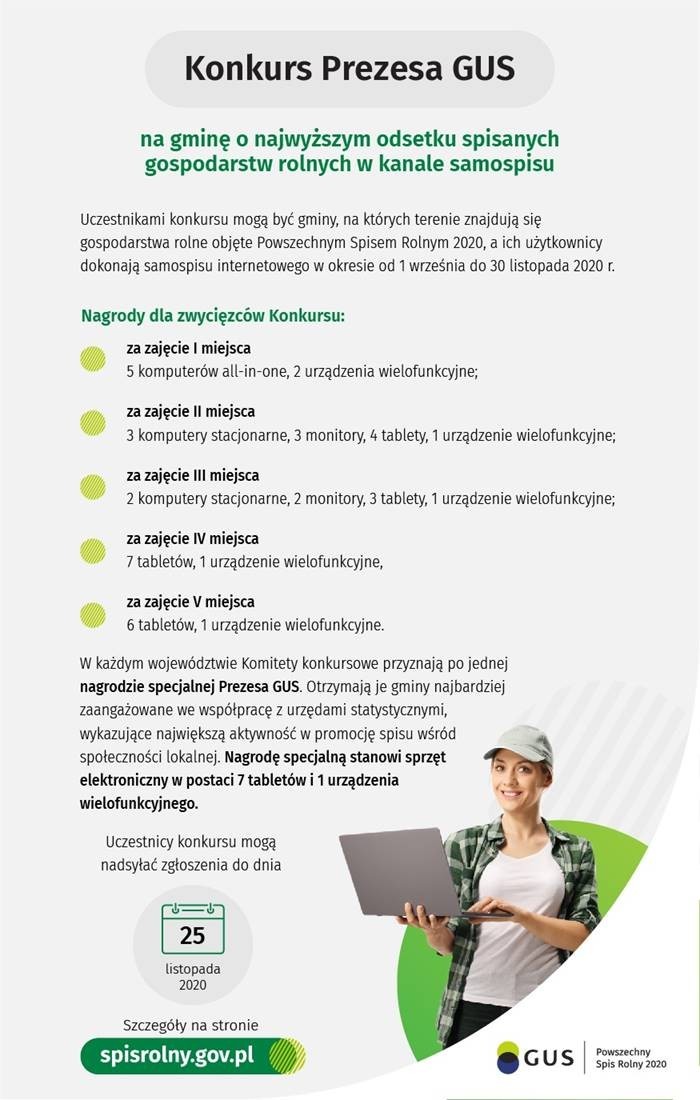 Konkurs adresowany jest do gmin, w których użytkownicy gospodarstw rolnych dokonują samospisu internetowego w okresie od 1 września do 30 listopada 2020 r.