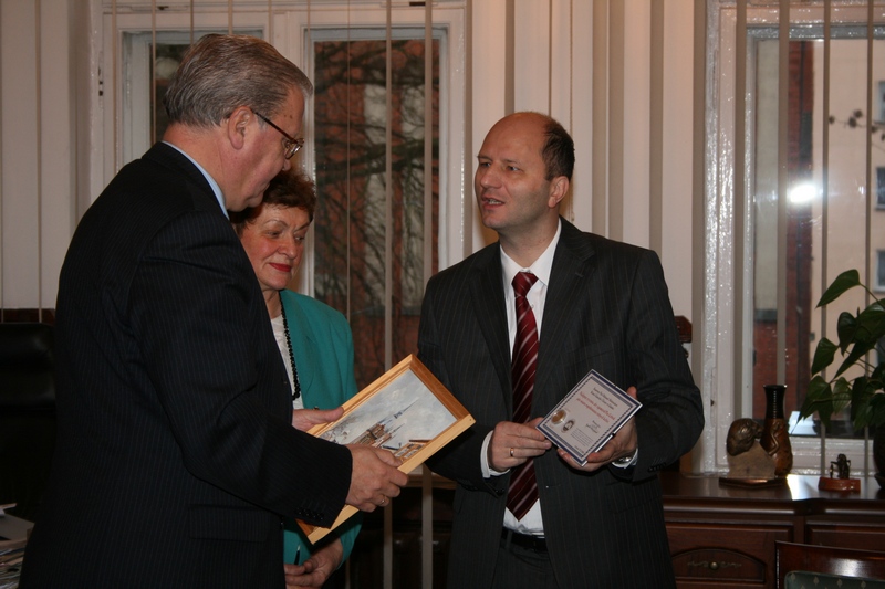 Od Burmistrza Włodzimierza Klaty i Przewodniczącej Rady Miejskiej Wandy Koniecznej pan Konsul otrzymał pamiątkowy dyplom z lewinkiem - lęborską monetą oraz życzeniami, „aby zapamiętał Lębork jako miasto współistnienia różnych kultur” oraz olejny obraz przedstawiający budynek lęborskiego ratusza. W drzwiach siedziby Związku Ukraińców przedstawiciele mniejszości ukraińskiej w Lęborku powitali go tradycyjnym chlebem ukraińskim (tzw.korowajem) i solą. Po hymnie Ukrainy dzieci z działającego w kole zespołu „Switanok” przedstawiły artystyczny program poetycko-wokalny przy akompaniamencie akordeonu (Roman Bułka). Na zakończenie odbyła się krótka konferencja prasowa z udziałem burmistrza W. Klaty i Konsula O. Medownikowa, podczas której obaj panowie nawiązali do podpisanego w 2004 roku porozumienia samorządowego Lęborka z ukraińskim miastem Sokal.