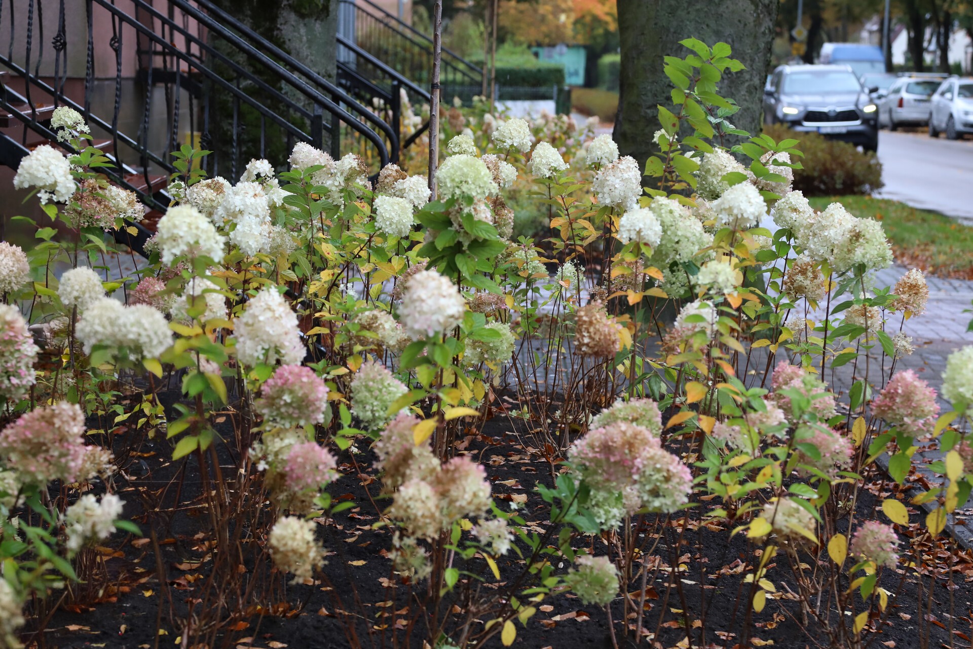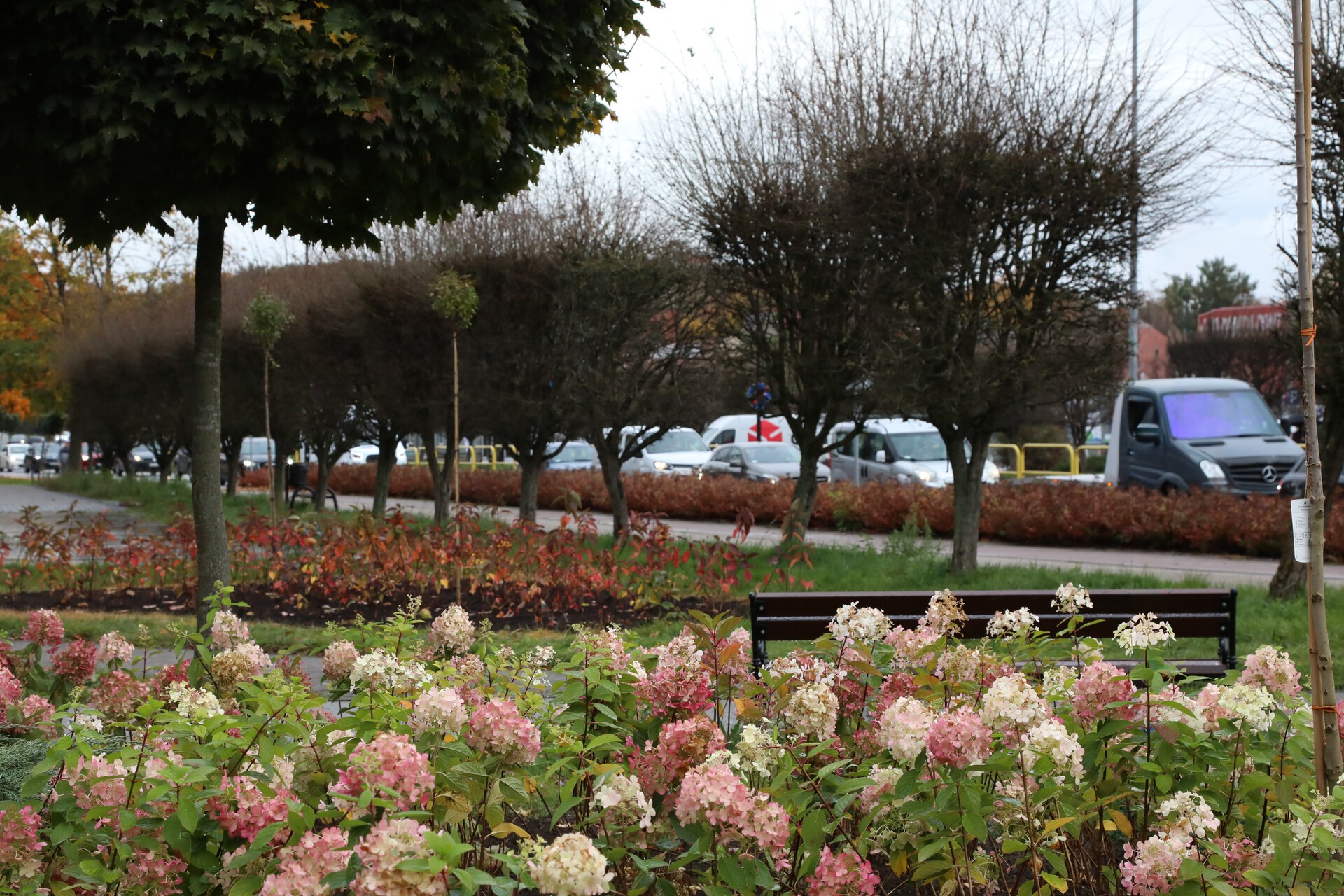 Także spacerując ulicą Armii Krajowej, przy skrzyżowaniu z ulicą Czołgistów, zobaczymy na czterech wysepkach nową roślinność. Nasadzonych zostało ponad sto sztuk hortensji, cztery dekoracyjne wiśnie i kilkanaście sztuk tawuły szarej. Ten ostatni krzew wyróżnia się niezwykle obfitym kwitnieniem wczesną wiosną, kiedy jego długie, przewieszające się pędy pokryte są licznymi, śnieżnobiałymi kwiatami. Posiada atrakcyjny, rozłożysty pokrój oraz drobne, szarozielone liście, które jesienią przebarwiają się na żółto.