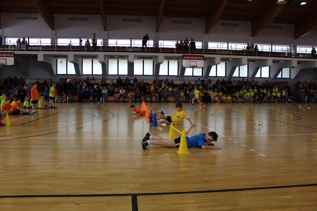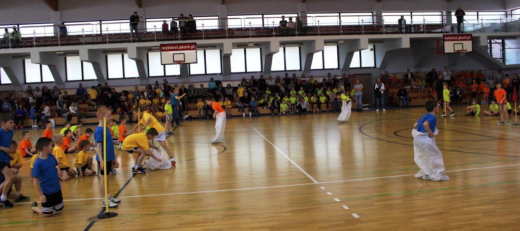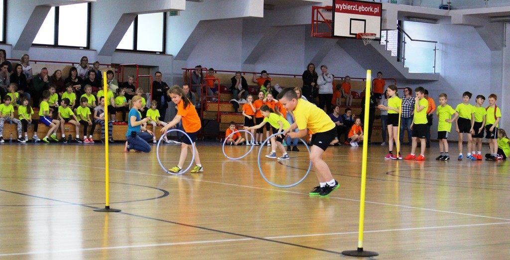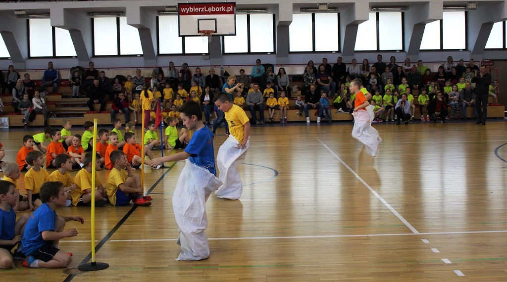 W Miejskiej Hali Sportowej w Lęborku, w sobotę 22 kwietnia br. przeprowadzony został Konkurs Sportowy dla Szkół Podstawowych „Kto z nas lepiej i prędzej”. W konkursie wzięły udział: Szkoła Podstawowa nr 4, 5 i 8 w Lęborku oraz Społeczna Językowa Szkoła Podstawowa. Reprezentacja każdej szkoły składała się z 36 uczniów z klas I, II i III.