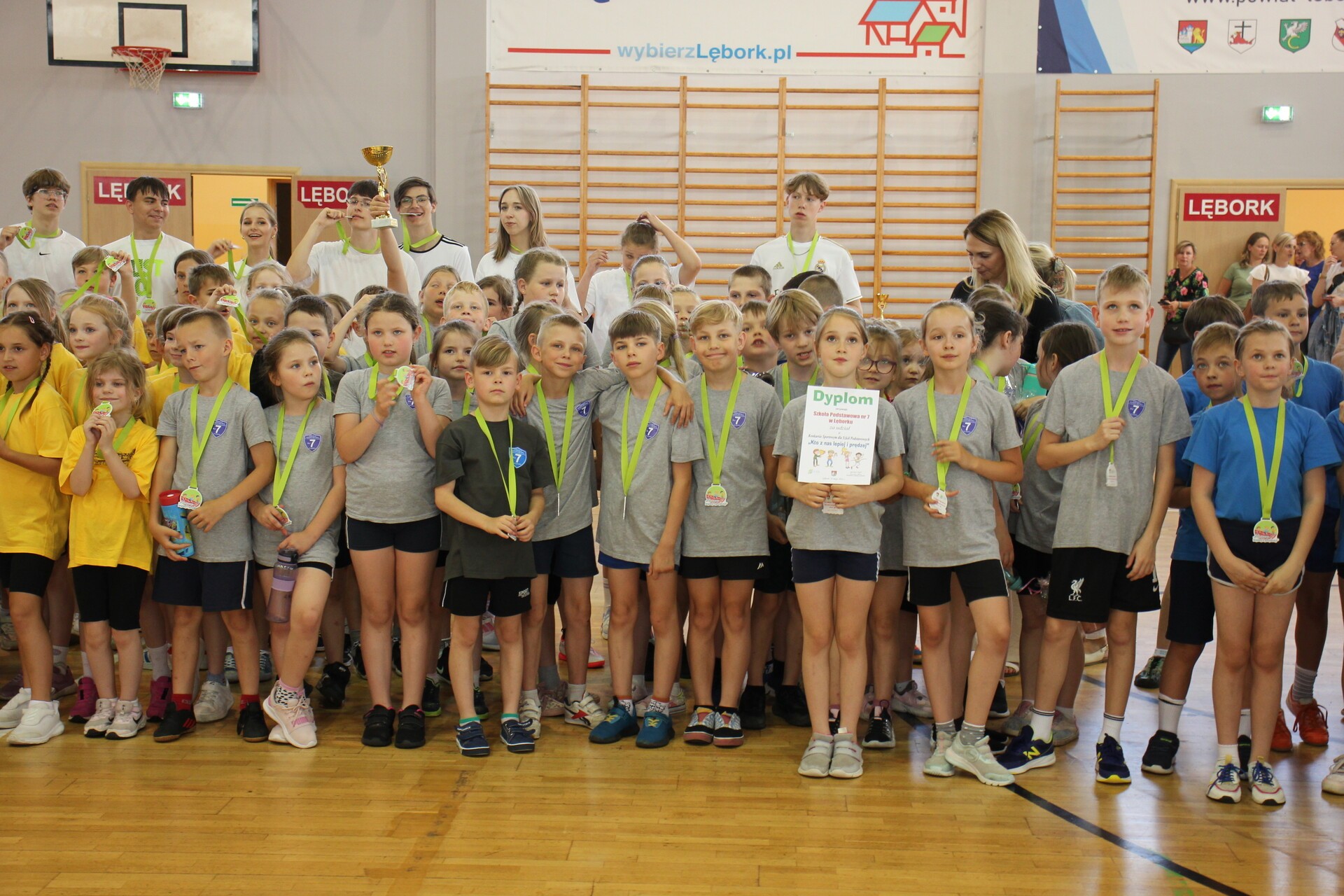W Miejskiej Hali Sportowej w Lęborku 24 maja br. odbyła się kolejna edycja konkursu sportowego dla szkół podstawowych „Kto z nas lepiej i prędzej”. W konkursie wzięły udział wszystkie publiczne szkoły z Lęborka tj. nr 1, 3, 4, 5, 7 i 8.