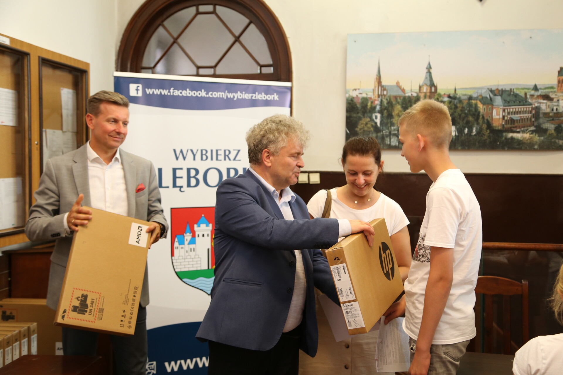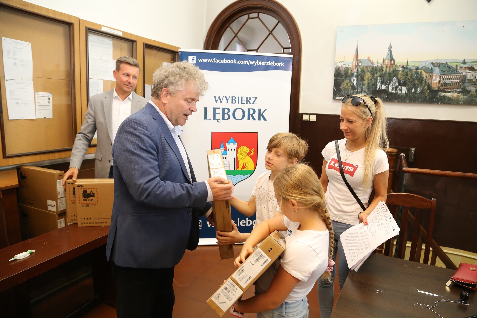 W ratuszu rozpoczęło się wydawanie komputerów i tabletów w ramach programu "Cyfrowa Gmina - Wsparcie dzieci z rodzin pegeerowskich w rozwoju cyfrowym - Granty PPGR". Miasto Lębork na ten cel otrzymało grant z Centrum Projektów Polska Cyfrowa. W przekazaniu pierwszych komputerów uczestniczył Burmistrz Lęborka Witold Namyślak.