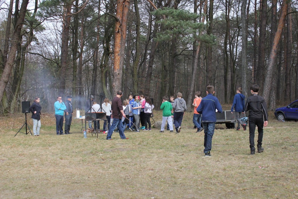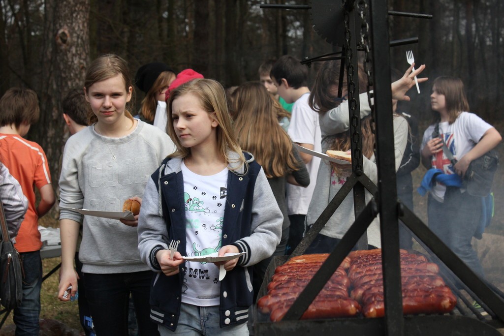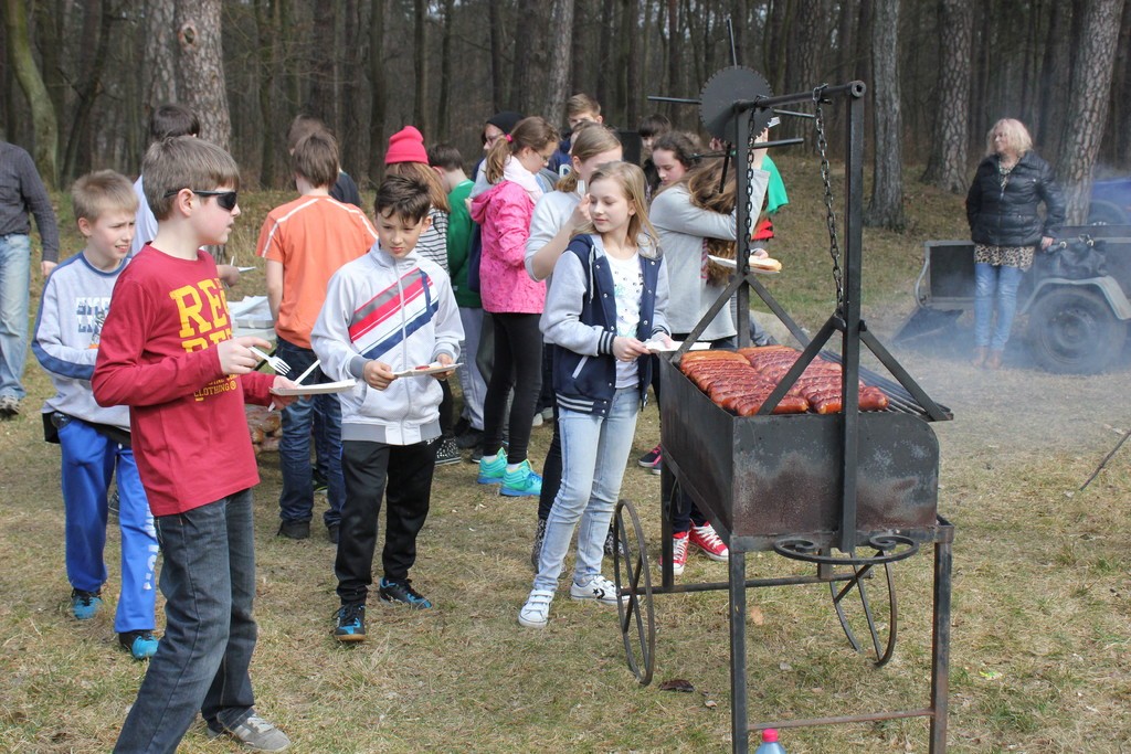 Rajd zakończył się przy kamiennych kręgach w parku im. B. Chrobrego, gdzie strudzeni wędrowcy zostali poczęstowani kiełbasą z grilla.