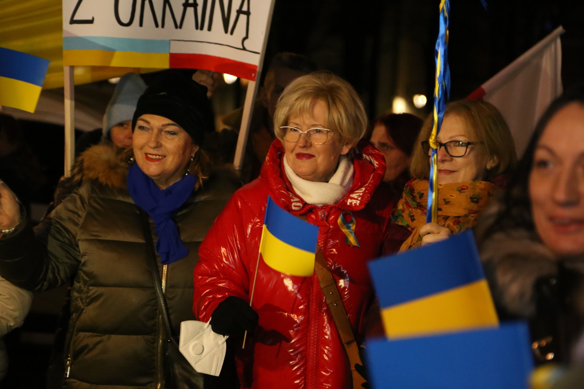 Manifestację wsparcia dla Ukrainy rozpoczęło odśpiewanie hymnów narodowych Polski i Ukrainy.