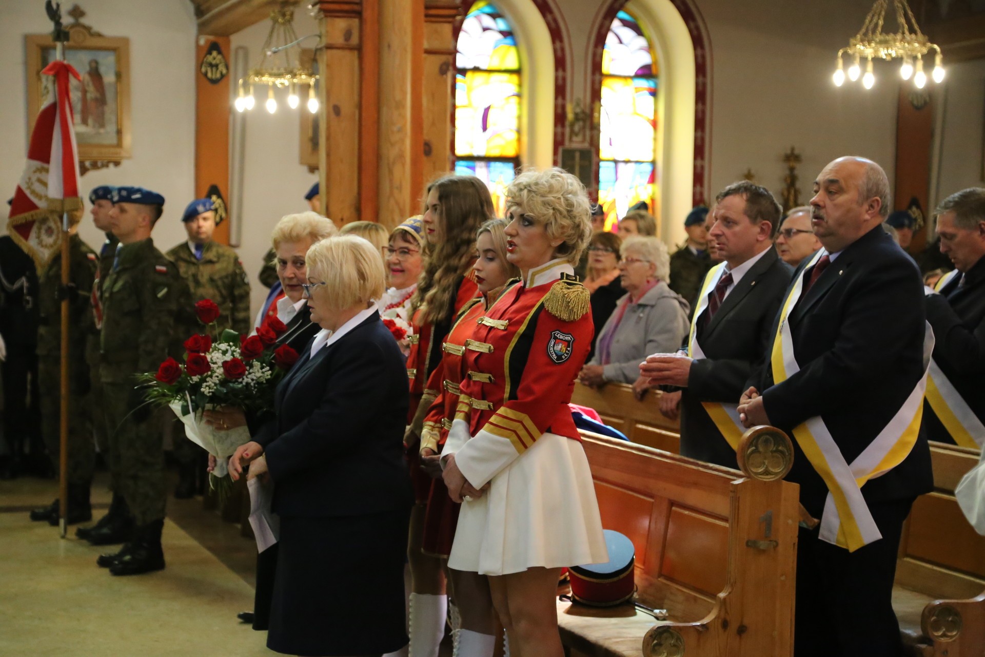 Wiązanki kwiatów pod Obeliskiem Niepodległości złożyli: senator RP Kazimierz Kleina, władze samorządowe miasta, powiatu i gmin, radni miejscy, delegacje kombatantów, organizacji pozarządowych, partii politycznych, lęborskich instytucji, szkół i przedszkoli, służb mundurowych i ratowniczych, rzemieślnicy, harcerze oraz mieszkańcy.