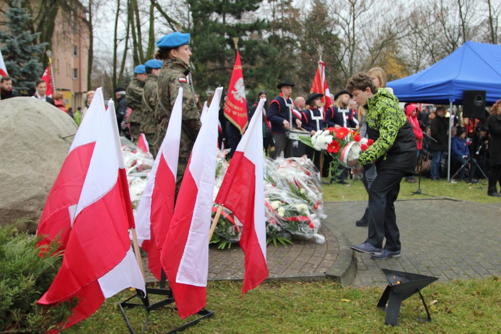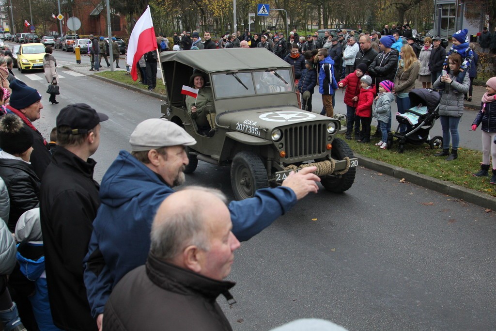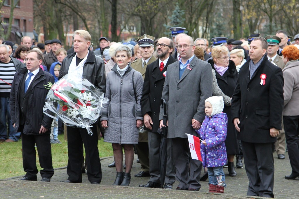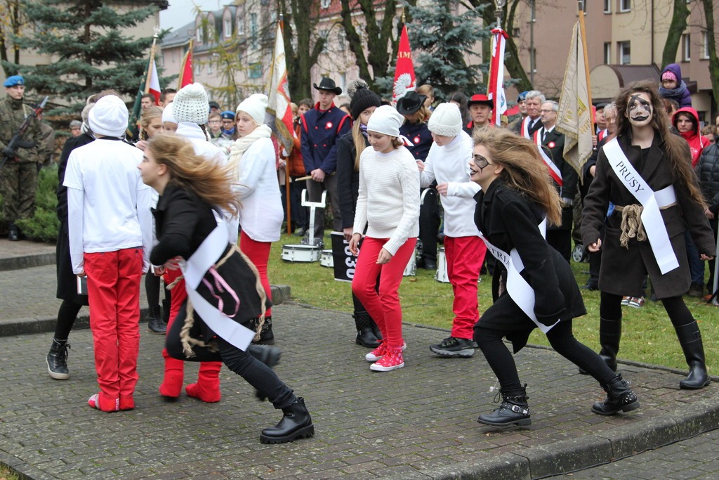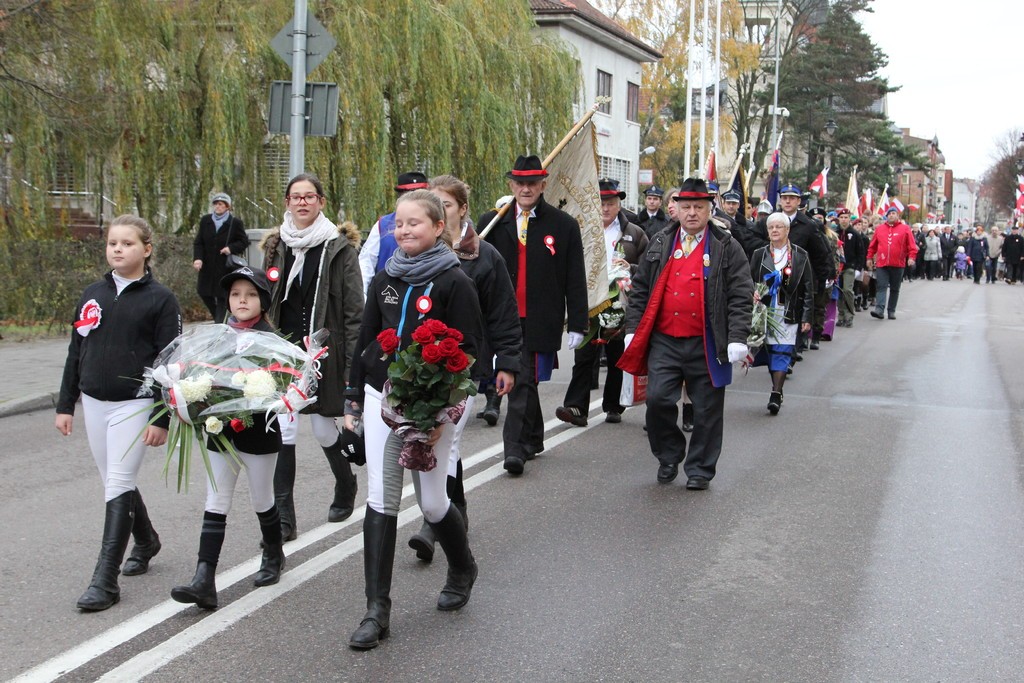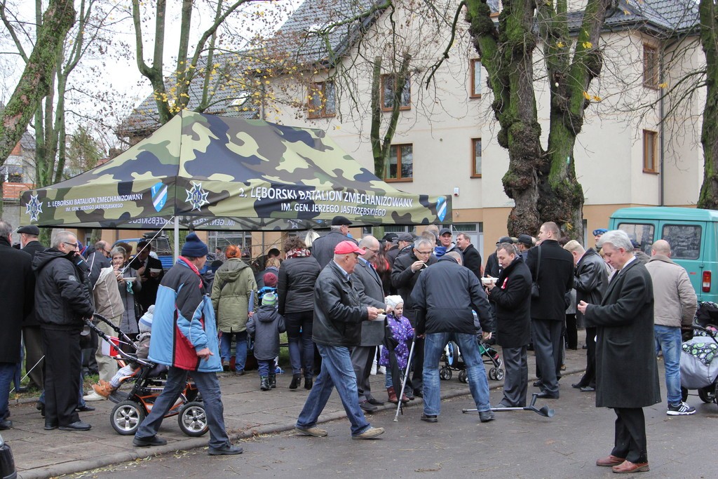 Pod Obeliskiem Niepodległości okolicznościowe przemówienie wygłosił Burmistrz Lęborka Witold Namyślak, który zachęcał do wspólnego świętowania. Następnie kapitan Michał Sobczuk odczytał Apel Pamięci, po którym nastąpiła salwa honorowa. Znakomity montaż słowno-muzyczny przygotowali uczniowie Szkoły Podstawowej nr 5 w Lęborku im. Wojska Polskiego. Uroczystości pod Obeliskiem zakończyła parada rekonstruktorów. Uczestnicy uroczystości mogli posilić się pyszną żołnierską grochówką przygotowaną przez 1 Lęborski Batalion Zmechanizowany. Po uroczystości odbył się również pokaz jeździecki przygotowany przez Stajnię Pałac Runowo i Pałac pod Bocianim Gniazdem. Były też przejażdżki w siodle, zabawy animacyjne w tym malowanie twarzy oraz konkursy z nagrodami.