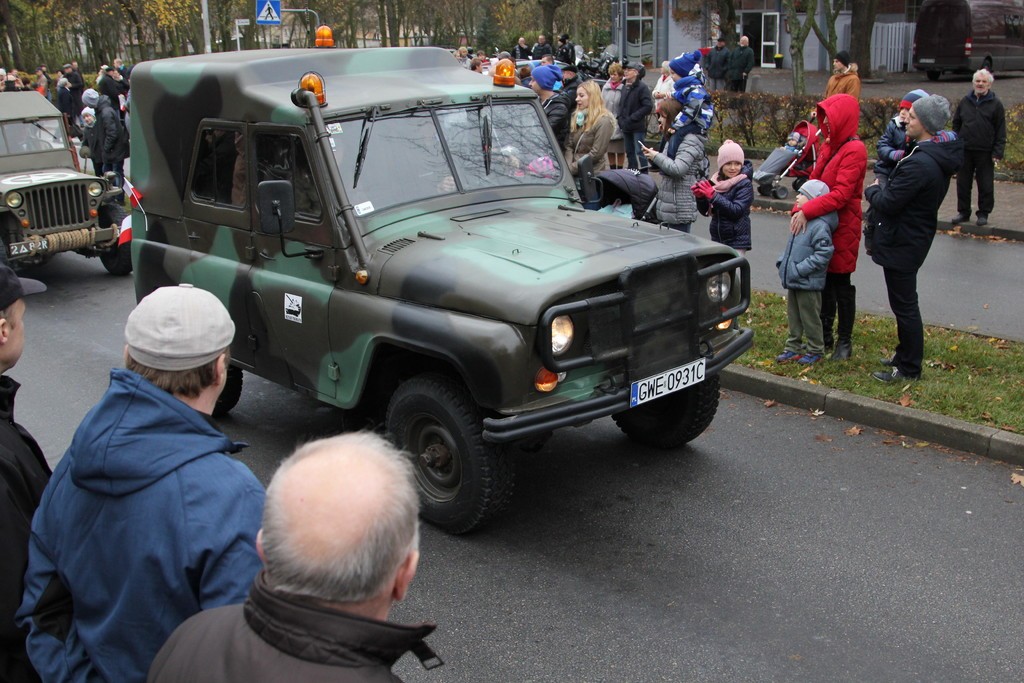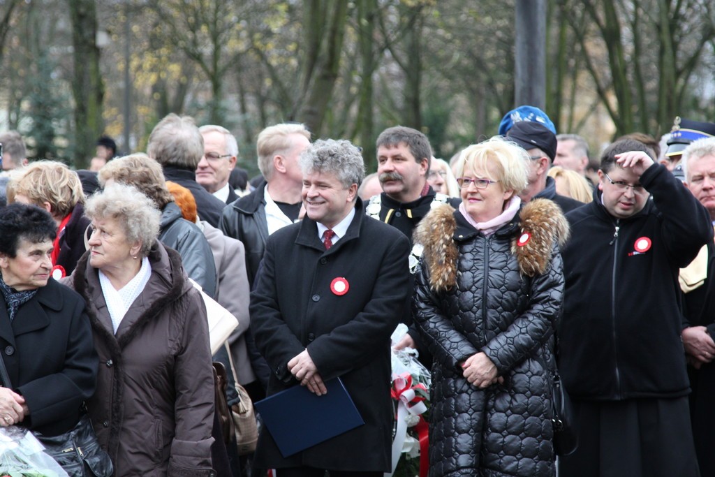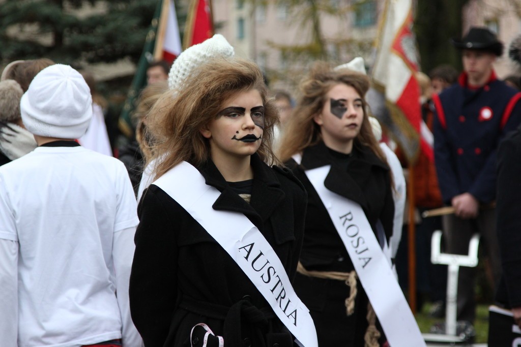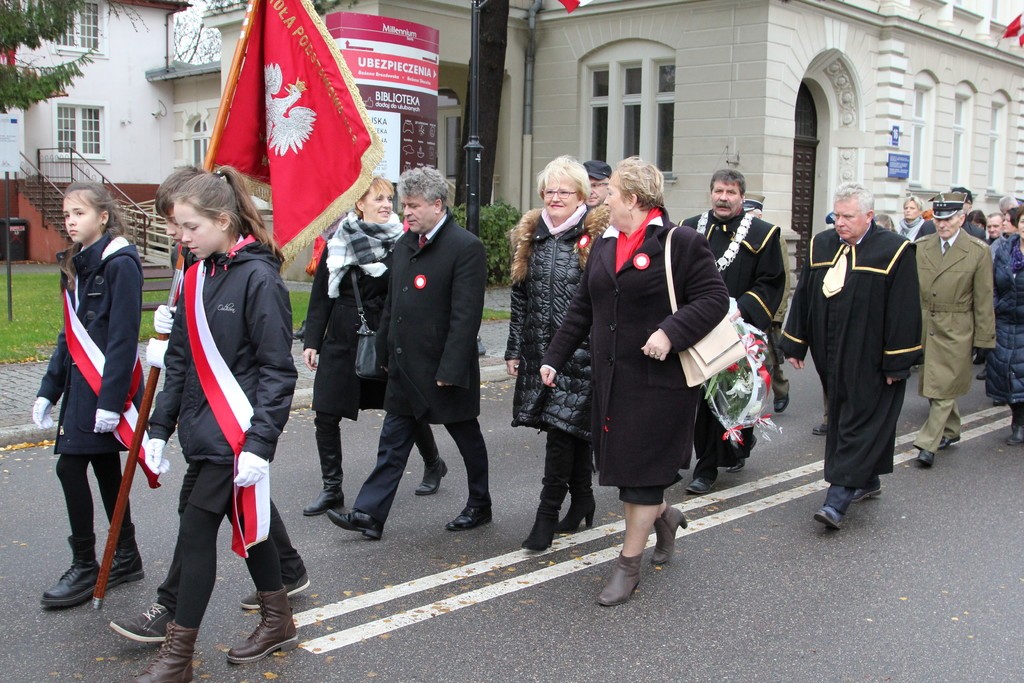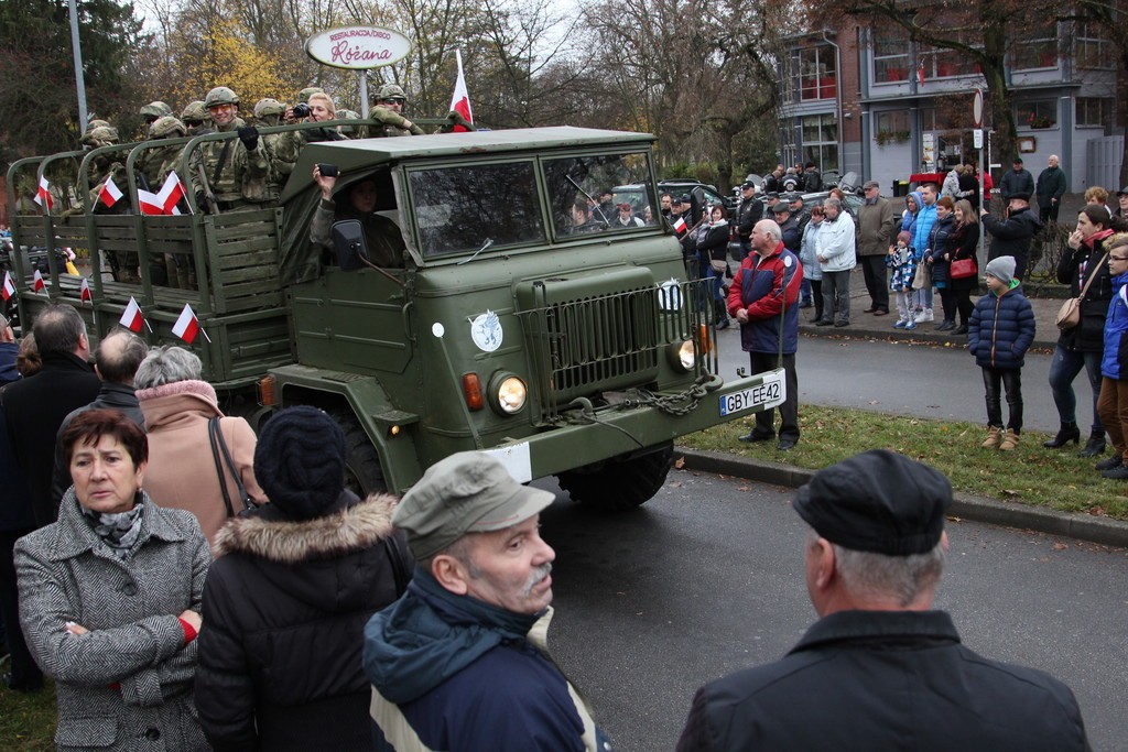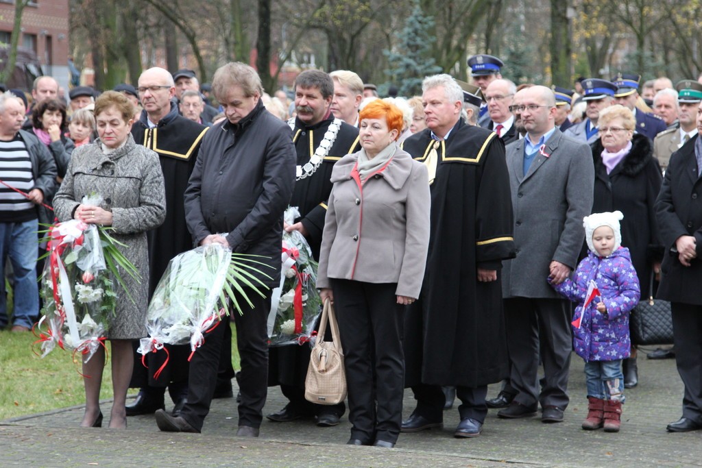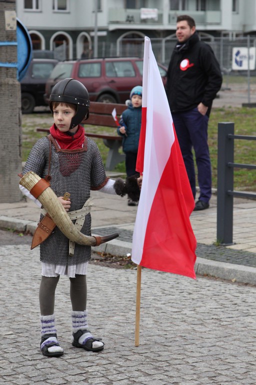 Pod Obeliskiem Niepodległości okolicznościowe przemówienie wygłosił Burmistrz Lęborka Witold Namyślak, który zachęcał do wspólnego świętowania. Następnie kapitan Michał Sobczuk odczytał Apel Pamięci, po którym nastąpiła salwa honorowa. Znakomity montaż słowno-muzyczny przygotowali uczniowie Szkoły Podstawowej nr 5 w Lęborku im. Wojska Polskiego. Uroczystości pod Obeliskiem zakończyła parada rekonstruktorów. Uczestnicy uroczystości mogli posilić się pyszną żołnierską grochówką przygotowaną przez 1 Lęborski Batalion Zmechanizowany. Po uroczystości odbył się również pokaz jeździecki przygotowany przez Stajnię Pałac Runowo i Pałac pod Bocianim Gniazdem. Były też przejażdżki w siodle, zabawy animacyjne w tym malowanie twarzy oraz konkursy z nagrodami.