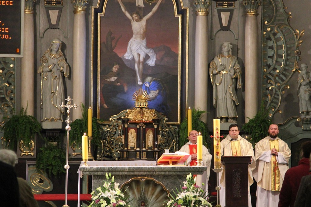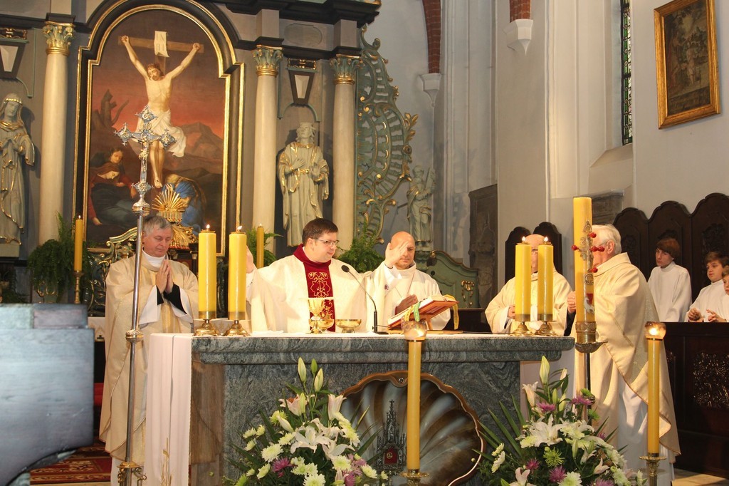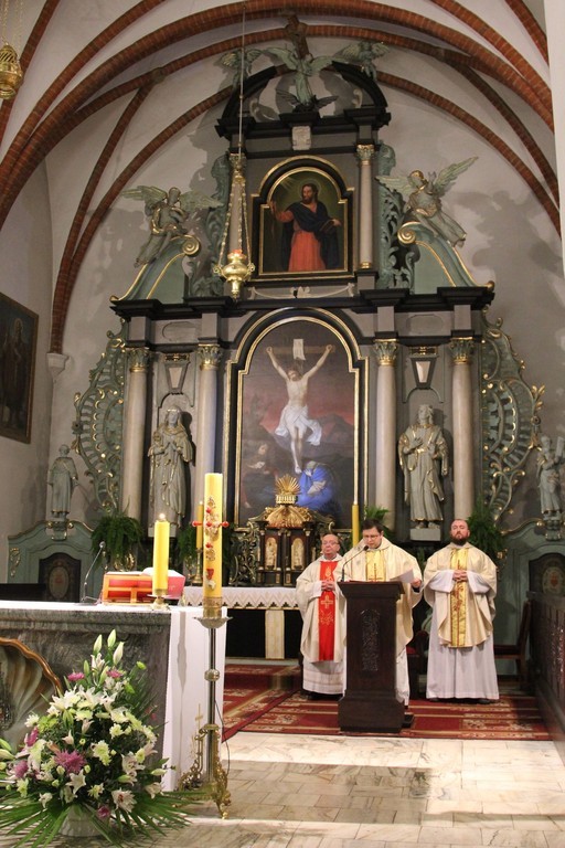 Świętowanie 11 listopada rozpoczęła tradycyjnie uroczysta msza święta w Sanktuarium św. Jakuba Ap. w Lęborku celebrowana przez proboszcza o. Romana Ziołę.