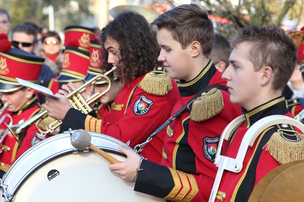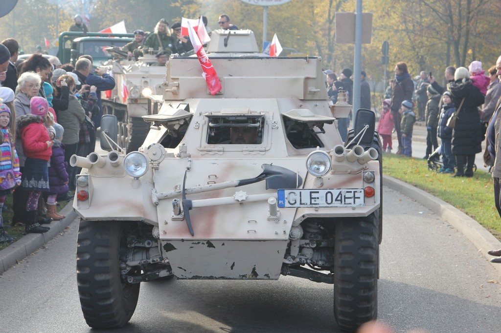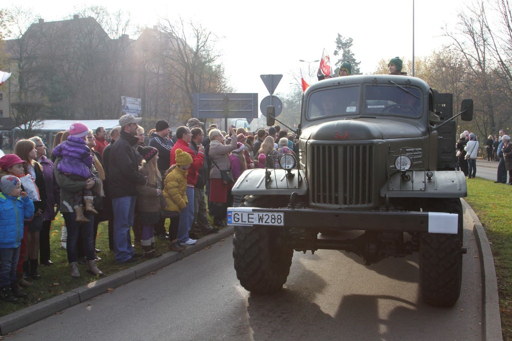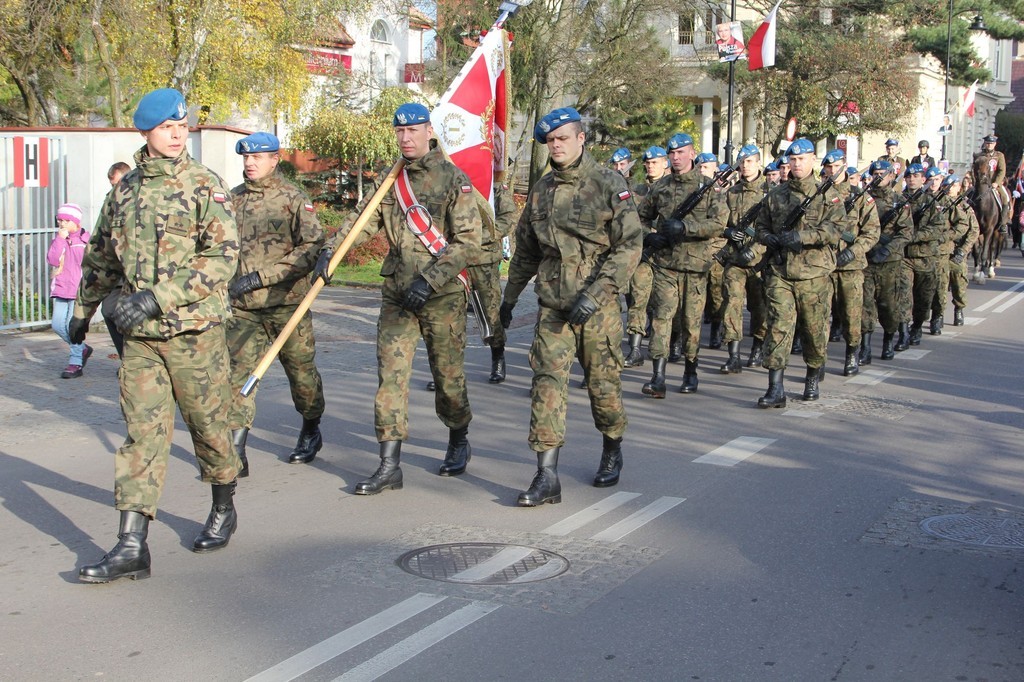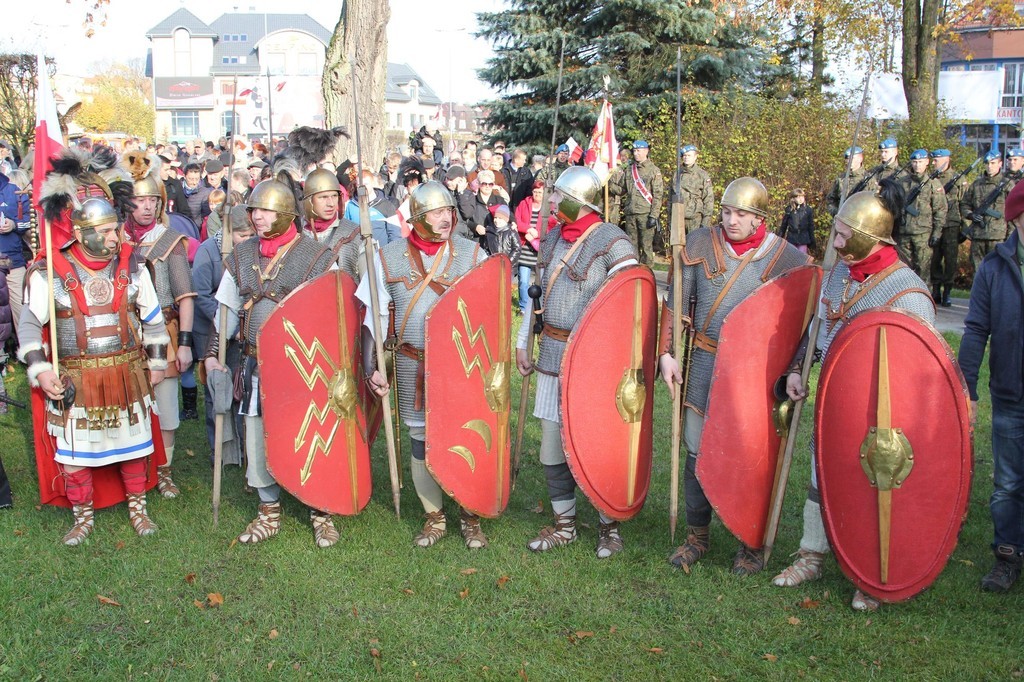 Bardzo liczny w tym roku był przemarsz pod Obelisk Niepodległości. Uczestniczyła w nim orkiestra, kompania wojska, konni jeźdźcy w historycznych strojach oraz grupy rekonstrukcyjne (m. in. oddział rzymskich legionistów i lęborskich łuczników). Nie zawiedli, jak zwykle harcerze, kombatanci, przedstawiciele władz samorządowych, służb mundurowych, miejskich spółek, firm, instytucji, organizacji pozarządowych i szkół.