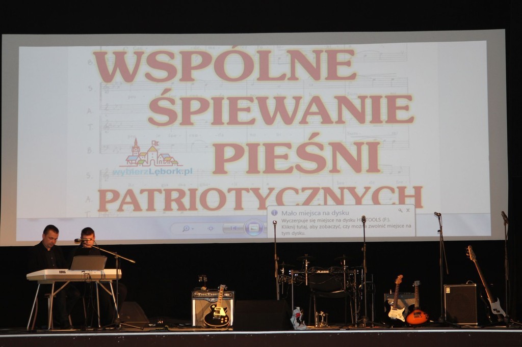 Ważnym elementem, który już na stałe wpisał się w repertuar obchodów, było wspólne śpiewanie pieśni patriotycznych w Lęborskim Centrum Kultury „Fregata". Śpiewanie pieśni historycznych prowadził dr Tadeusz Formela.