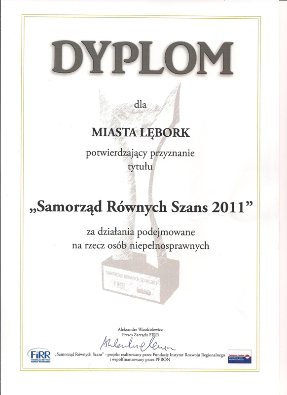 Konkurs „Samorząd równych szans 2011" organizowany jest przez Fundację Instytut Rozwoju Regionalnego w Warszawie. W tym roku tytuł „Samorząd równych szans 2011" wraz z dyplomem za działania podejmowane na rzecz osób niepełnosprawnych trafił do Lęborka za realizację projektu Ośrodek Wspierania Organizacji Pozarządowych i Wolontariatu „Lęborski Parasol".
