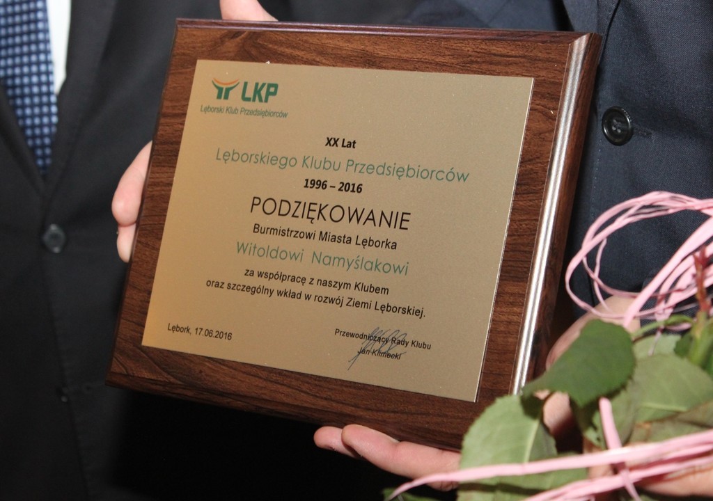 17 czerwca br. w Sali Rajców Ratusza odbyło się jubileuszowe spotkanie Lęborskiego Klubu Przedsiębiorców. Rocznicowe spotkanie z okazji 20-lecia działalności było okazją do wspomnień, przypomnienia dotychczasowej działalności i nakreślenia planów na przyszłość. Za zasługi dla Lęborka i wieloletnią pracę na rzecz Miasta i lokalnej społeczności medal Burmistrza Lęborka z rąk Witolda Namyślaka odebrał założyciel LKP Marek Stawski oraz Prezes „Pracodawców Pomorza” Zbigniew Canowiecki.