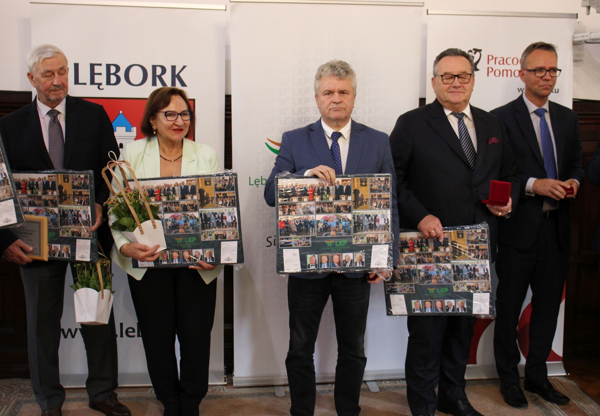 Na ręce obecnego prezesa Lęborskiego Klubu Przedsiębiorców Jerzego Tyrakowskiego burmistrz Witold Namyślak wraz z Przewodniczącym Rady miejskiej Jarosławem Litwinem wręczyli pamiątkowy grawerton dziękując członkom LKP za wieloletnią dobrą współpracę z samorządem, zaangażowanie w życie miasta i otwartość na potrzeby lokalnej społeczności.