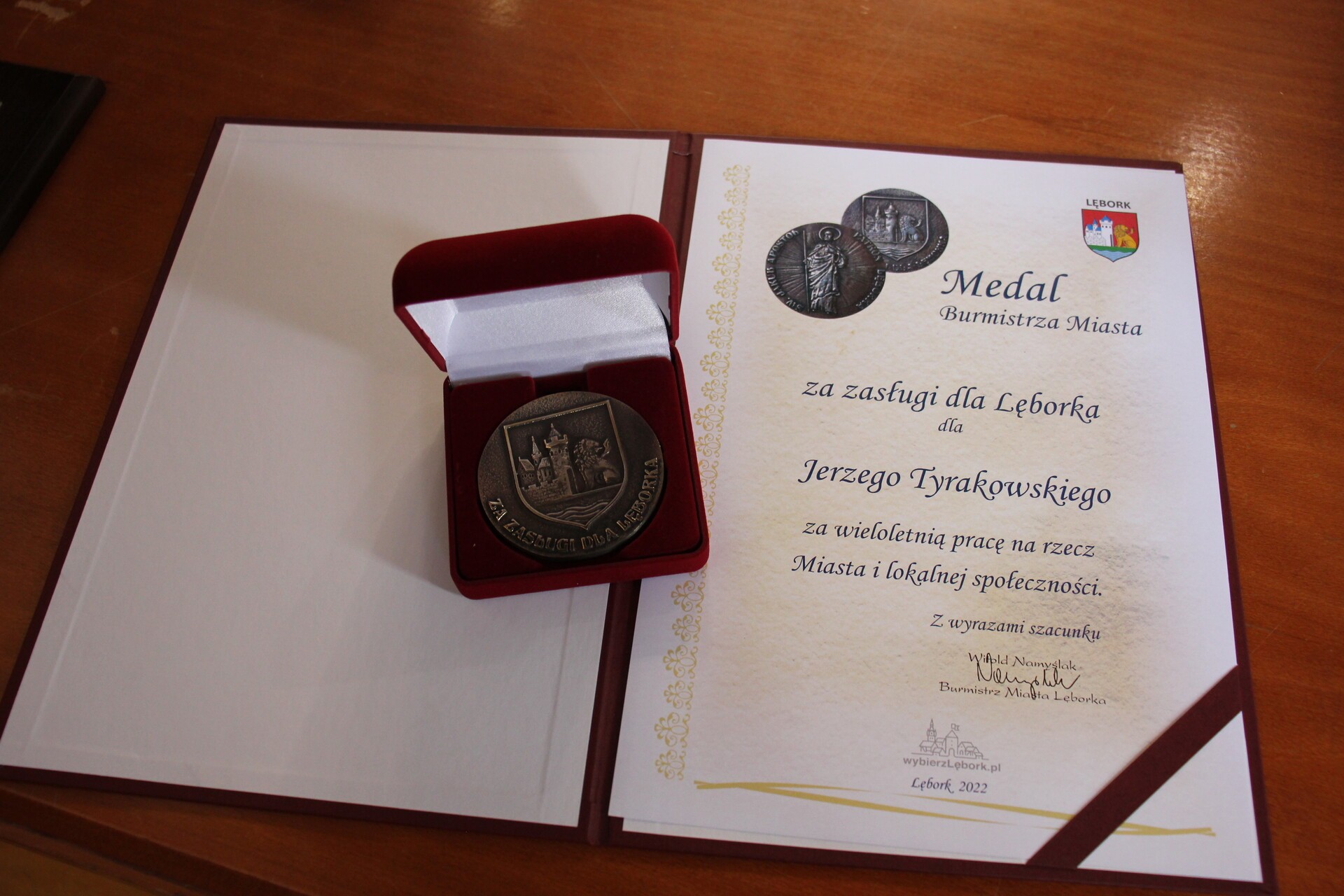 Jerzy Tyrakowski za wieloletnią pracę na rzecz miasta i lokalnej społeczności otrzymał od burmistrza Medal św. Jakuba.