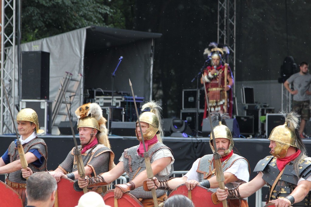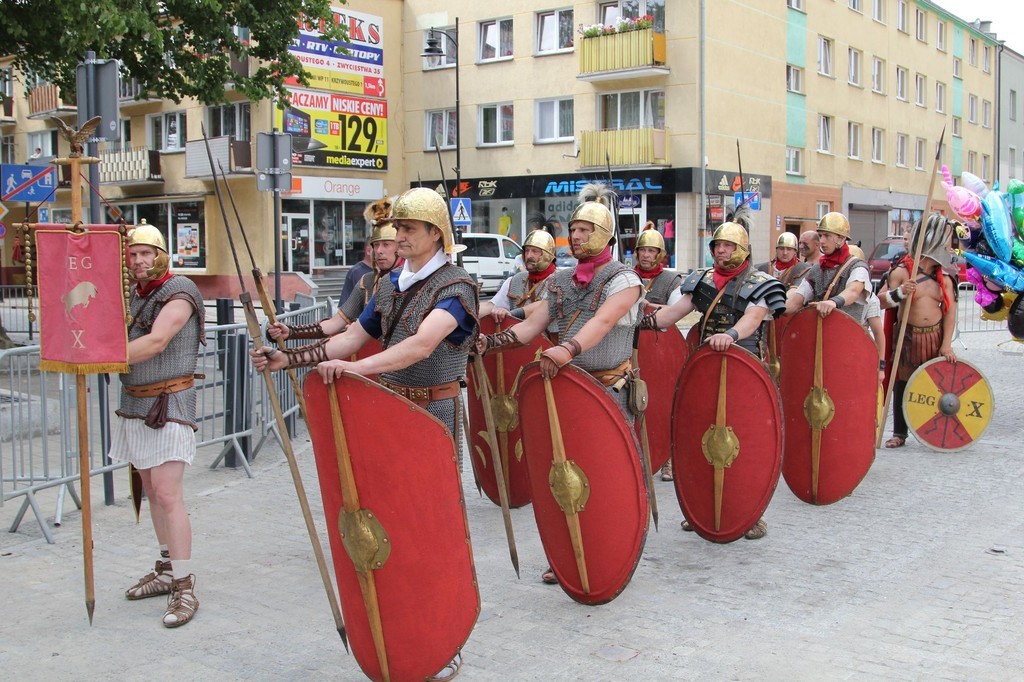 O godz. 14 pod scenę główną przybył rzymski Legio X. Grupą rekonstrukcyjną oddziału rzymskich legionistów spod lęborskiego Oskowa dowodził Wiesław Formela, który fachowo omówił ze sceny historię, wyposażenie i zasady obowiązujące w Legio X.