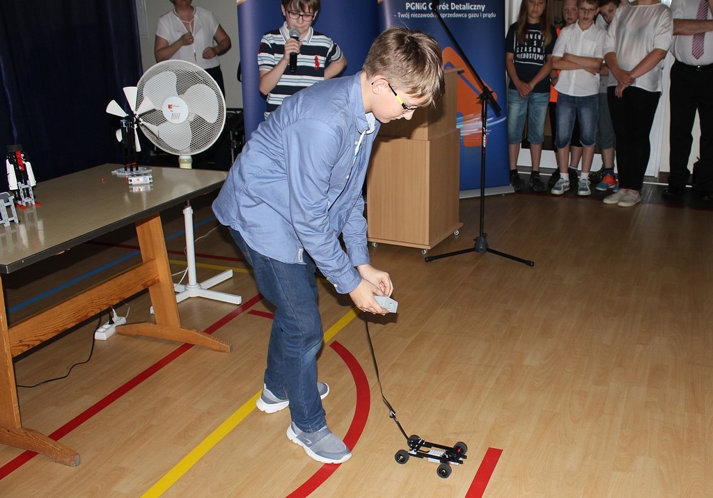 Lęborskie Dni Techniki, które po raz 33 zorganizowane zostały w naszym mieście coraz częściej kierowane są do najmłodszych. Spotkanie w SJSP rozpoczął pokaz pracowników marketingu PGNiG Obrót Detaliczny Region Pomorski pt. „Błękitna lekcja”. Podczas lekcji popartej wieloma przykładami dzieci i młodzież dowiedzieli się, że gaz ziemny jest przyjaznym środowisku źródłem energii, zapoznali się z zasadami bezpiecznego użytkowania urządzeń gazowych, sposobem wydobycia gazu oraz jego właściwościami fizyko-chemicznymi. Następnie uczniowie działającej w Społecznej Językowej Szkoły Podstawowej Ligi Przyrodniczej przedstawili prezentacje o odnawialnych źródłach energii. Kolejna atrakcją był pokaz robotów zasilanych energią odnawialną przygotowany przez uczniów z robototechnicznego koła LEGO MINDSTORM.