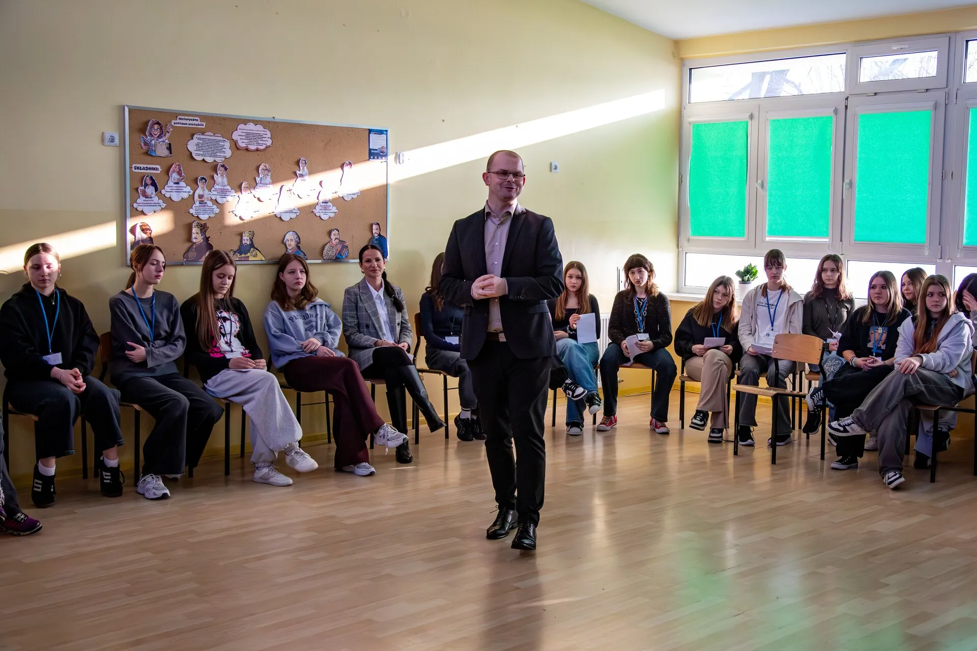 Zajęciom przysłuchiwały się nauczycielki Monika Czubaszek-Dubicka oraz Elwira Panek, które na co dzień przygotowują uczniów do świadomego i aktywnego uczestnictwa w życiu obywatelskim.