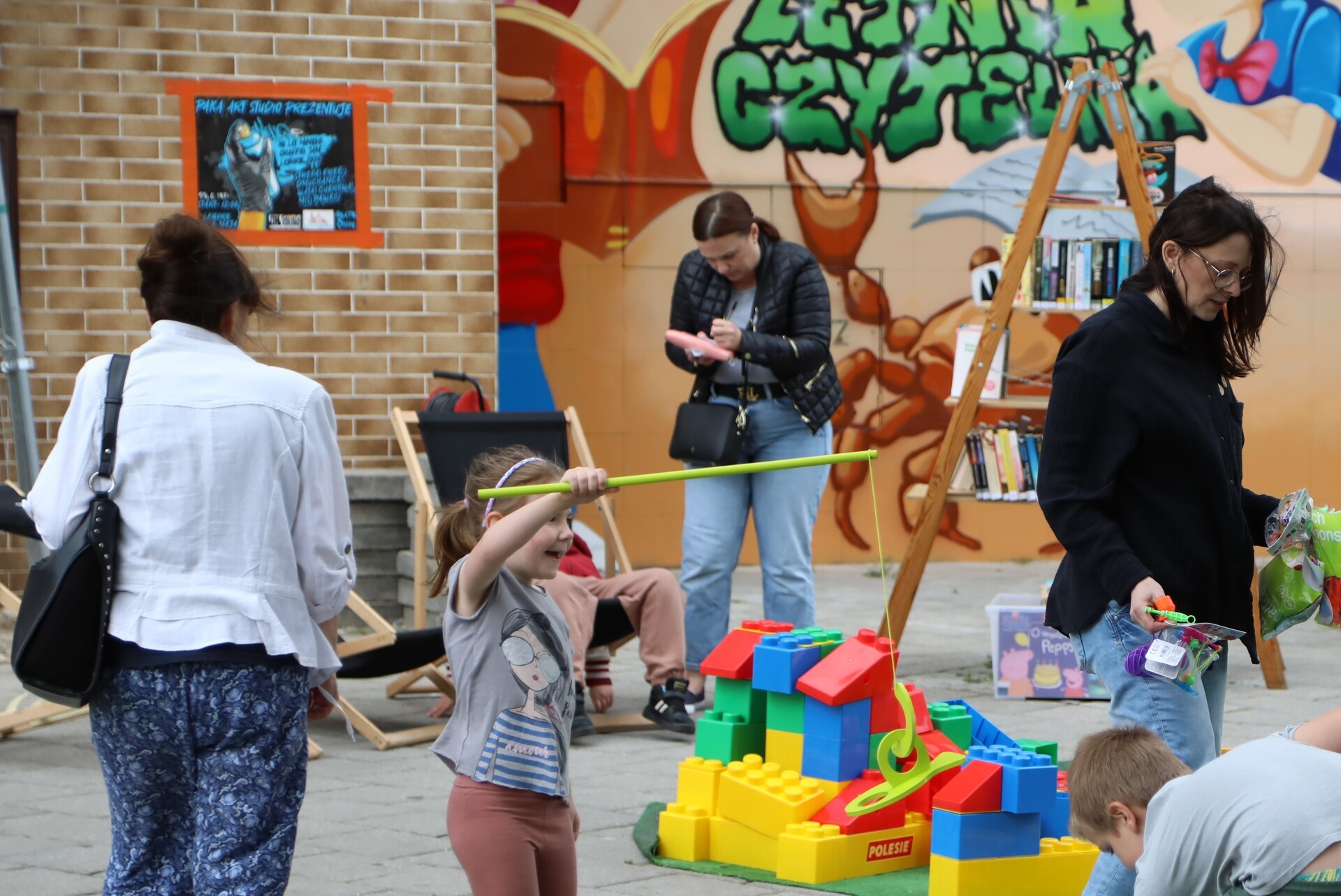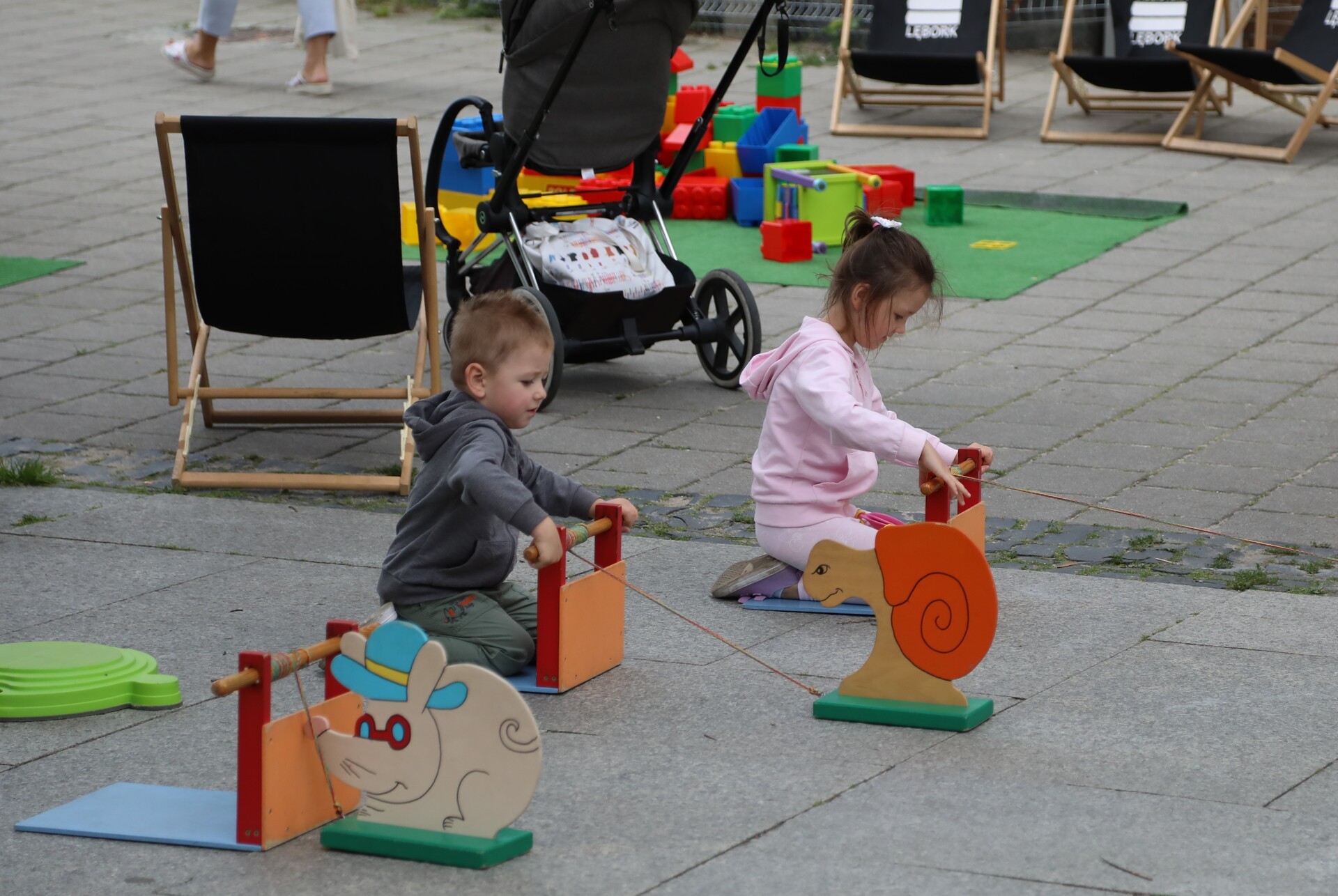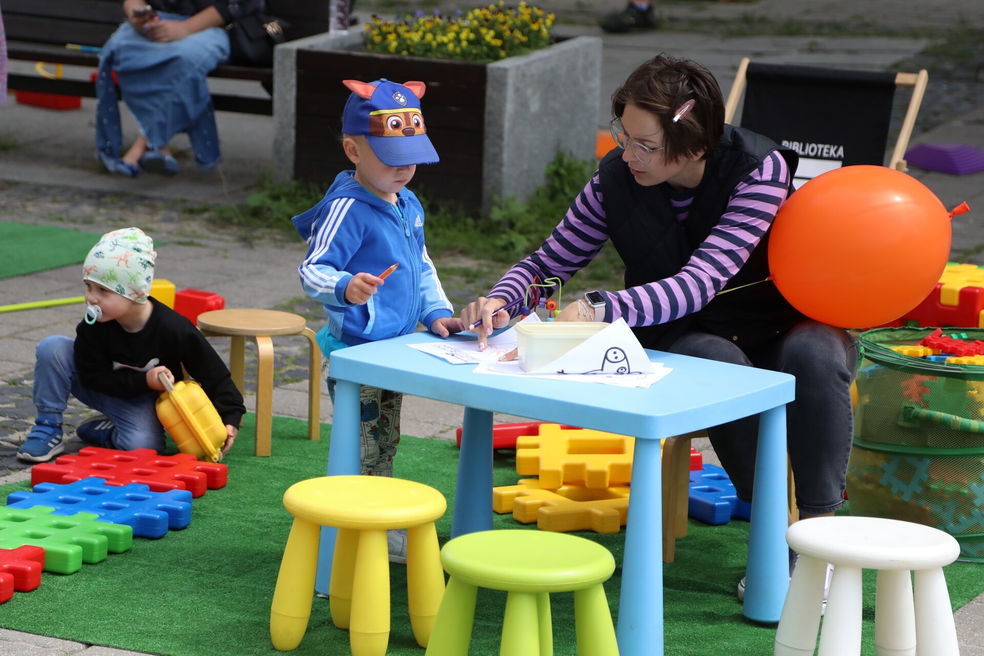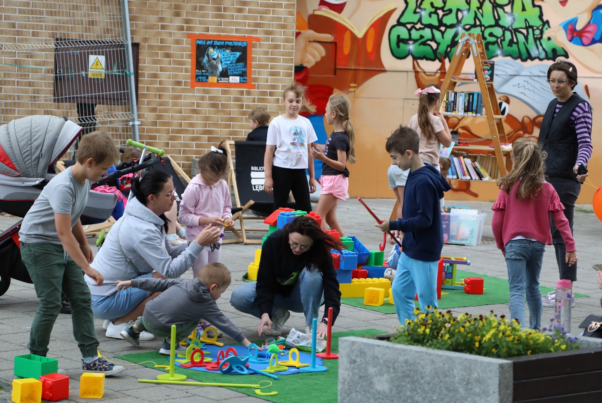 Dla najmłodszych przygotowano specjalne atrakcje: zabawy ruchowe, tor przeszkód, bańki mydlane, klocki wielkoformatowe, kolorowanki, konkursy z nagrodami oraz leżaki.