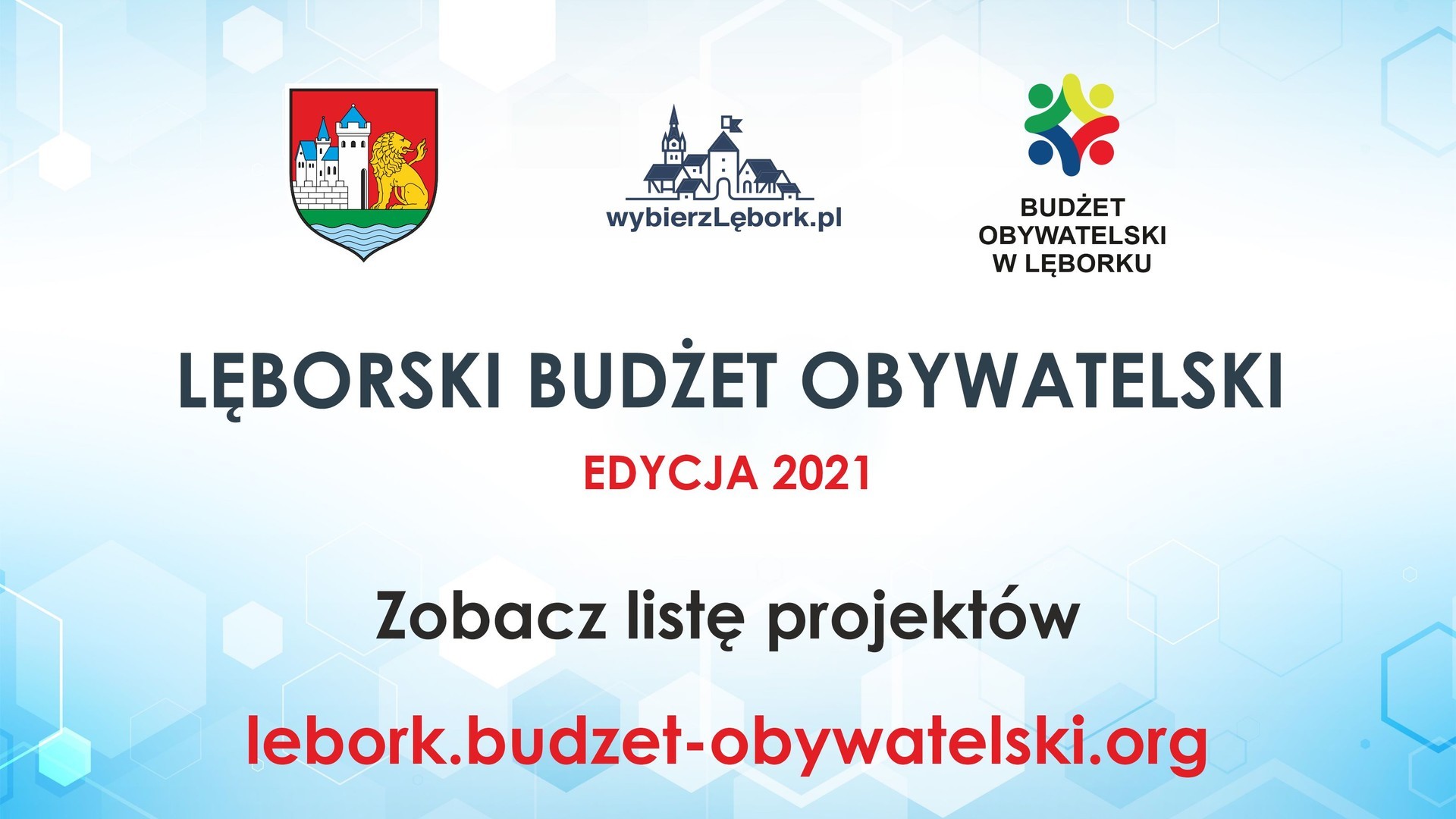 Informujemy, że na stronie internetowej https://lebork.budzet-obywatelski.org zamieszczone zostały projekty złożone do Budżetu Obywatelskiego w Lęborku na 2021 rok. 10 kwietnia br. projekty zostaną wzbogacone o ewentualne prezentacje poszczególnych wnioskodawców, celem zaprezentowania zgłoszonych pomysłów mieszkańcom Lęborka.