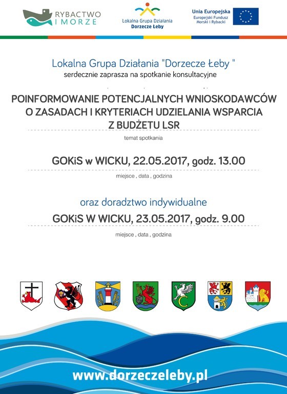 Stowarzyszenie Lokalna Grupa Działania „Dorzecze Łeby” zaprasza potencjonalnych wnioskodawców na spotkania konsultacyjne ws. zasad i kryteriów udzielania wsparcia w budżetu LSR. Najbliższe spotkania odbędą się 22 i 23 maja w GOKiS w Wicku.