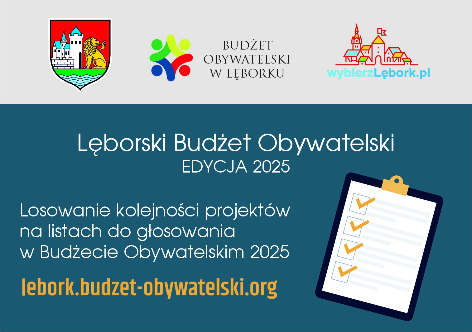 Losowanie kolejności projektów na listach do głosowania nastąpi w dniu 20 maja 2024 r. o godz. 8.00 na Sali Rajców Urzędu Miejskiego w Lęborku.