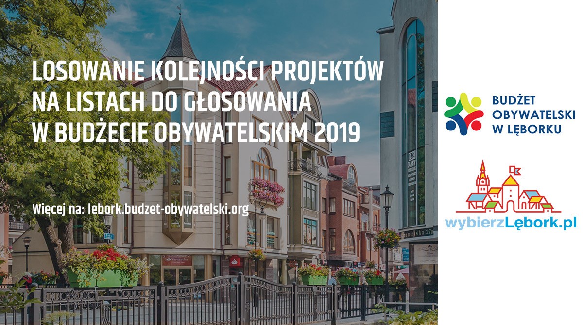 Burmistrz Miasta zaprasza mieszkańców oraz wnioskodawców projektów złożonych do Budżetu Obywatelskiego w Lęborku na 2019 rok, na publiczne losowanie kolejności projektów na Liście projektów do głosowania.