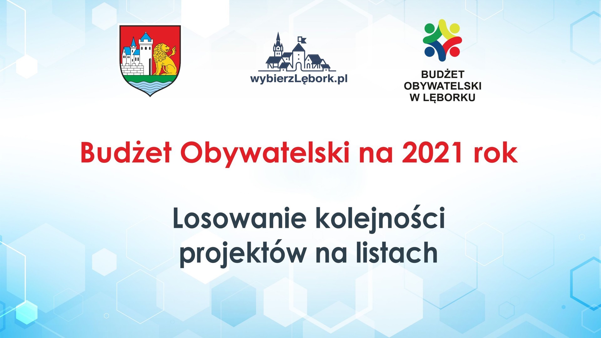 Burmistrz Miasta informuje mieszkańców oraz wnioskodawców projektów złożonych do Budżetu Obywatelskiego w Lęborku na 2021 rok o publicznym losowaniu kolejności projektów na Liście projektów do głosowania.