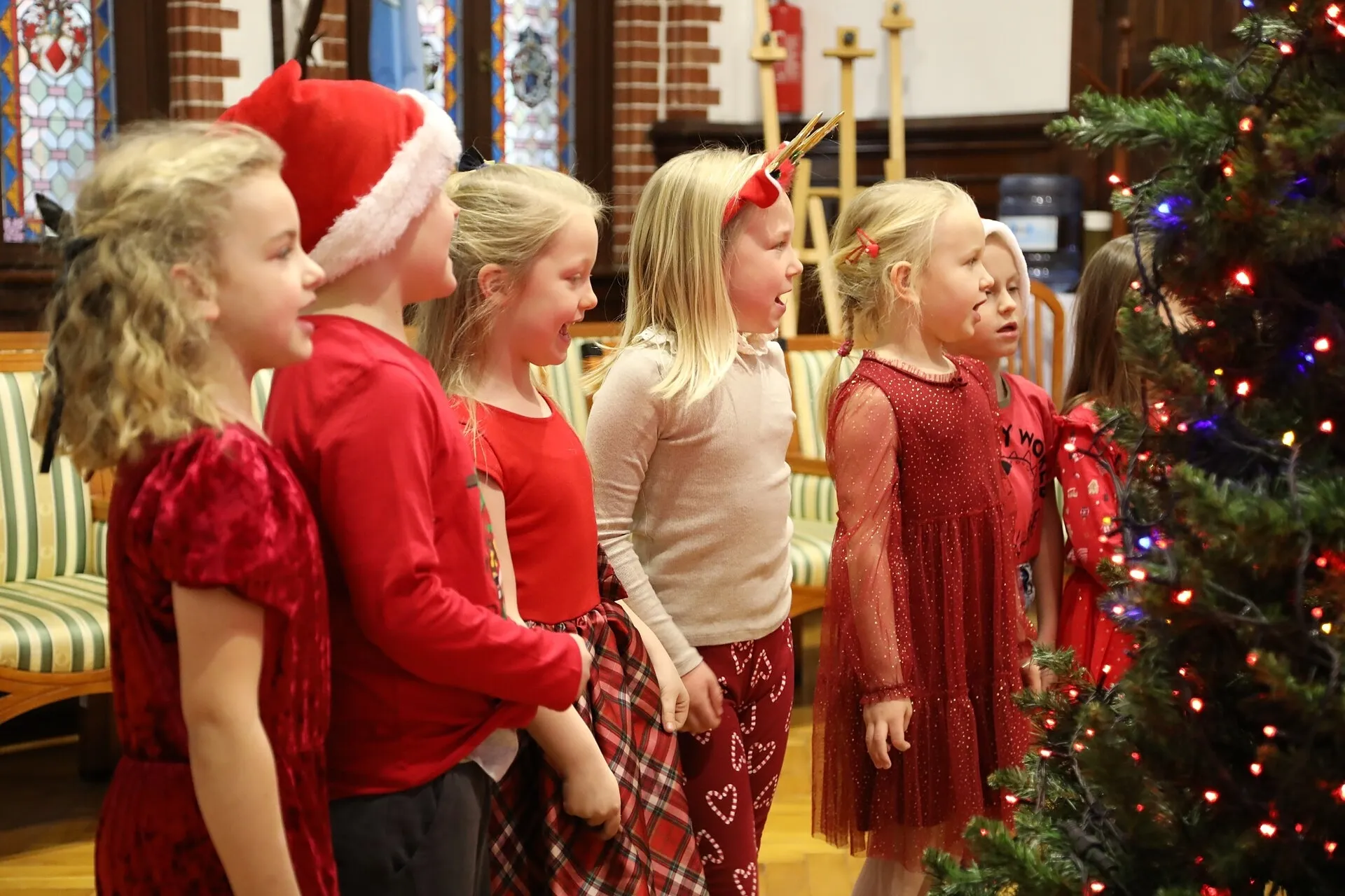 Spotkanie rozpoczęło się od zaśpiewania przez dzieci świątecznej piosenki, która wprowadziła wszystkich w wyjątkowy, magiczny nastrój. Następnie maluchy z radością i dużym zaangażowaniem przystąpiły do dekorowania drzewka. Błyszczące bombki oraz własnoręcznie wykonane ozdoby szybko pojawiły się na gałązkach, tworząc piękną, wspólną kompozycję.