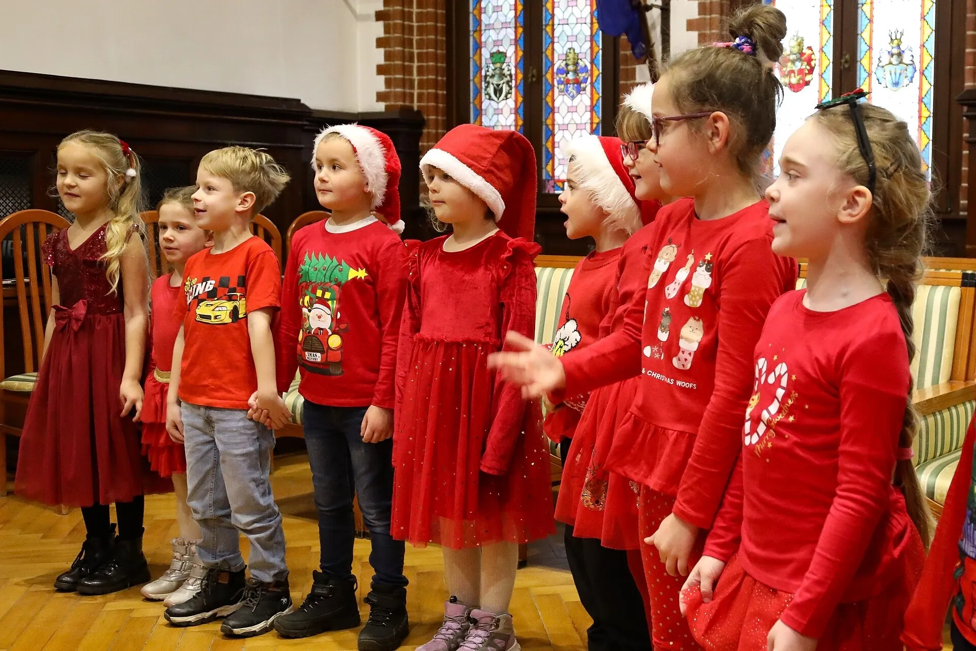 Na zakończenie dzieci złożyły świąteczne życzenia, a od burmistrza otrzymały słodki upominek, który wywołał jeszcze więcej uśmiechów.