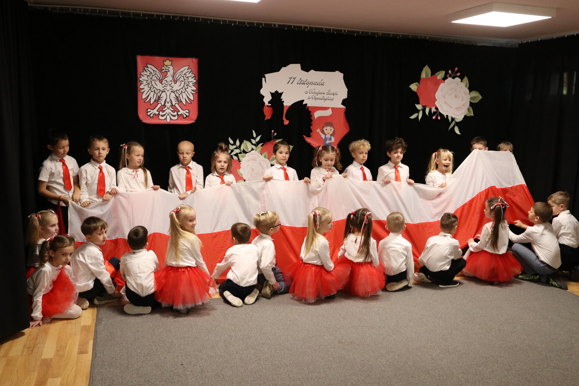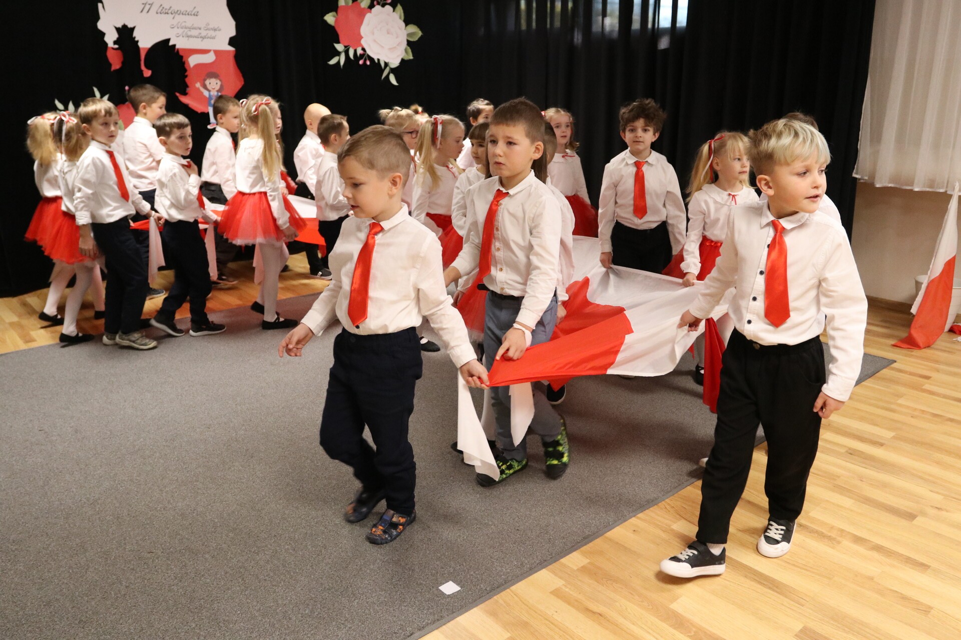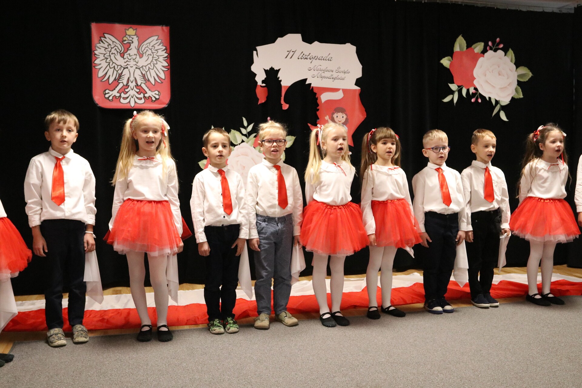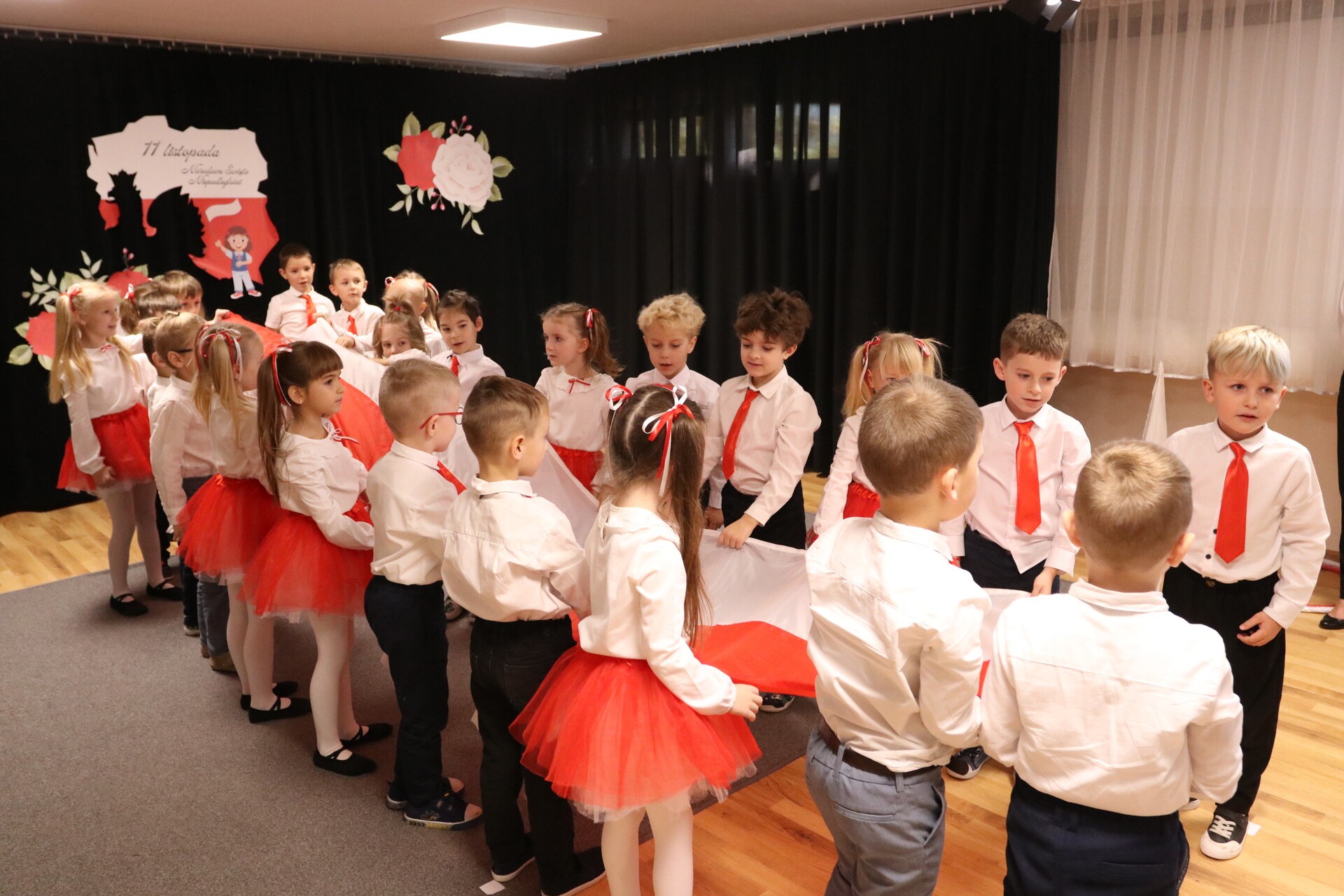 Przygotowany przez przedszkolaki barwny i dynamiczny program artystyczny wypełniły wiersze, piosenki i tańce w biało-czerwonych barwach. Dzieci z dumą prezentowały symbole narodowe przypominając wszystkim o znaczeniu wolności i miłości do Ojczyzny.