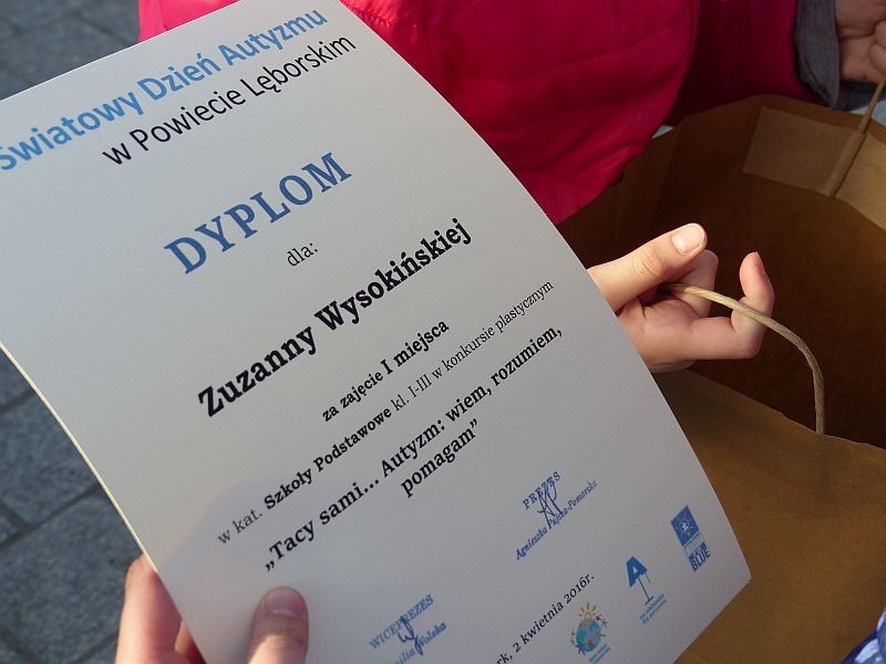 Finałem niebieskiej manifestacji było rozstrzygnięcie konkursu plastycznego „Tacy sami… Autyzm: wiem, rozumiem, pomagam”. – Nasza ideą było to, by zaproszenie do udziału w konkursie było stało się pretekstem do przekazania najmłodszym w przystępny sposób informacji o autyzmie. Służyć temu miały materiały jakie zamieściliśmy na naszej stronie internetowej dostosowane do wieku odbiorców – wyjaśnia Wioletta Tubacka, jedna z koordynatorek plastycznego konkursu.