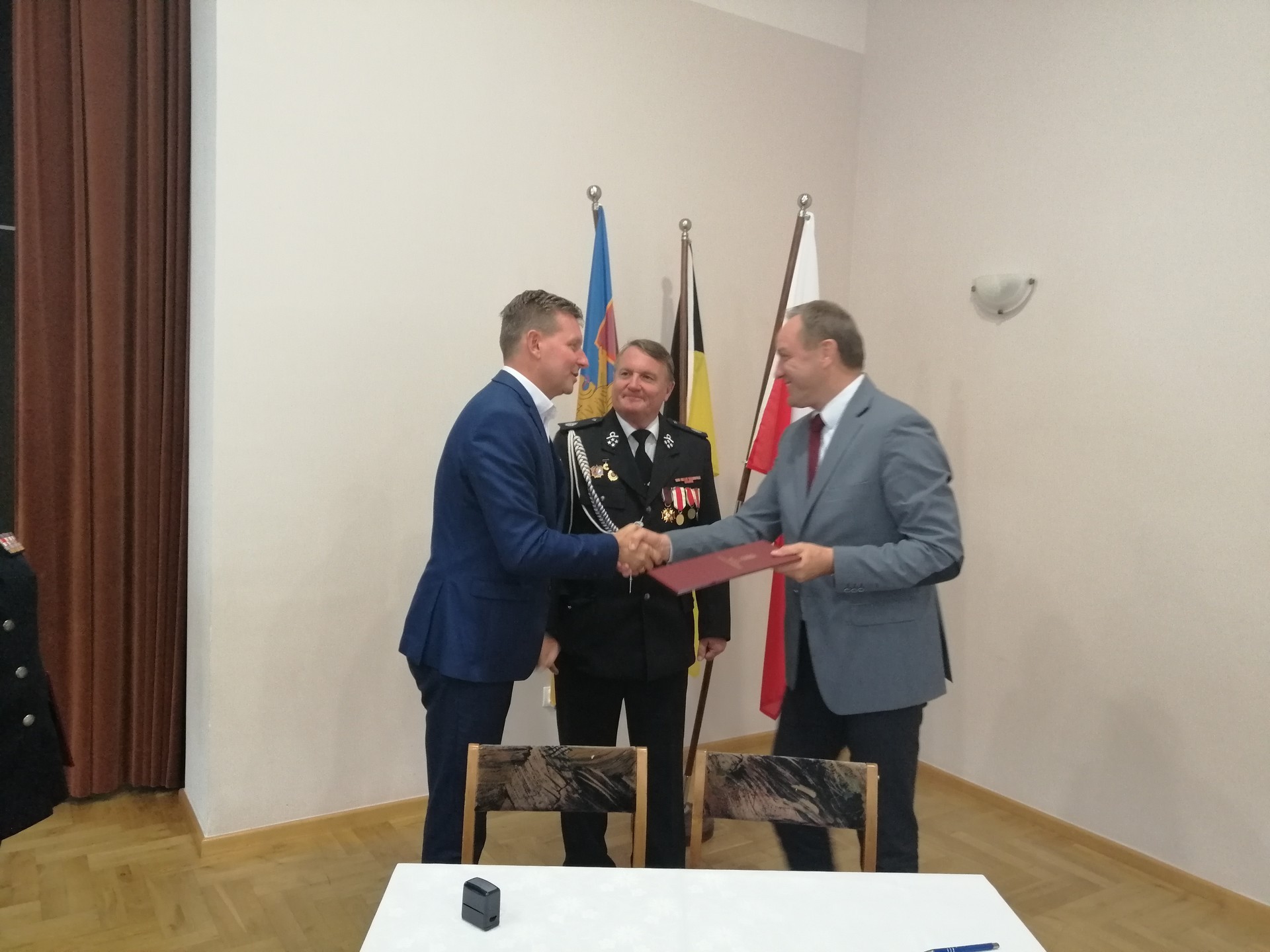 W dniu 21 sierpnia 2019 roku w Żelistrzewie została podpisana umowa pomiędzy Urzędem Marszałkowskim w Gdańsku a Gminą Miasto Lębork na udzielenie pomocy finansowej w formie dotacji z przeznaczeniem na dofinansowanie zakupu hełmów bojowych oraz butów strażackich dla Ochotniczej Straży Pożarnej w Lęborku. Podczas podpisania umowy Gminę Miasto Lębork reprezentował Sekretarz Miasta Lęborka Marian Kurzydło, zaś OSP Lębork prezes Wiesław Wójcik.