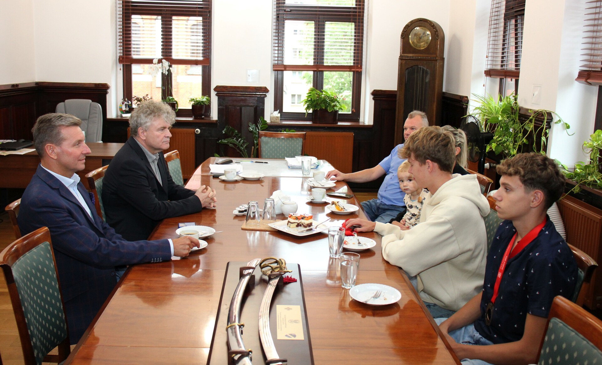 Burmistrz Witold Namyślak wraz z sekretarzem Marianem Kurzydło wręczyli medalistom i trenerce pisemne gratulacje oraz nagrody rzeczowe. W spotkaniu w ratuszu uczestniczył także ojciec Michała, Ireneusz Gajdus.