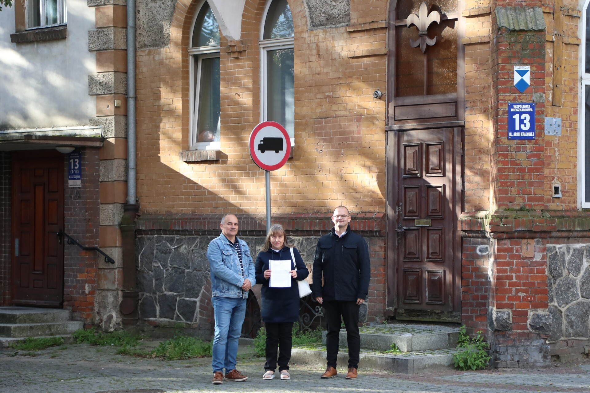 Zakres inwestycji, a także wyzwania związane z mieszkaniem w obiekcie zabytkowym, były omawiane na miejscu przez burmistrza Jarosława Litwina, naczelnika Wydziału Architektury UM Lębork Wojciecha Juraka oraz przedstawicielkę zarządu wspólnoty – Mirosławę Kucharską.