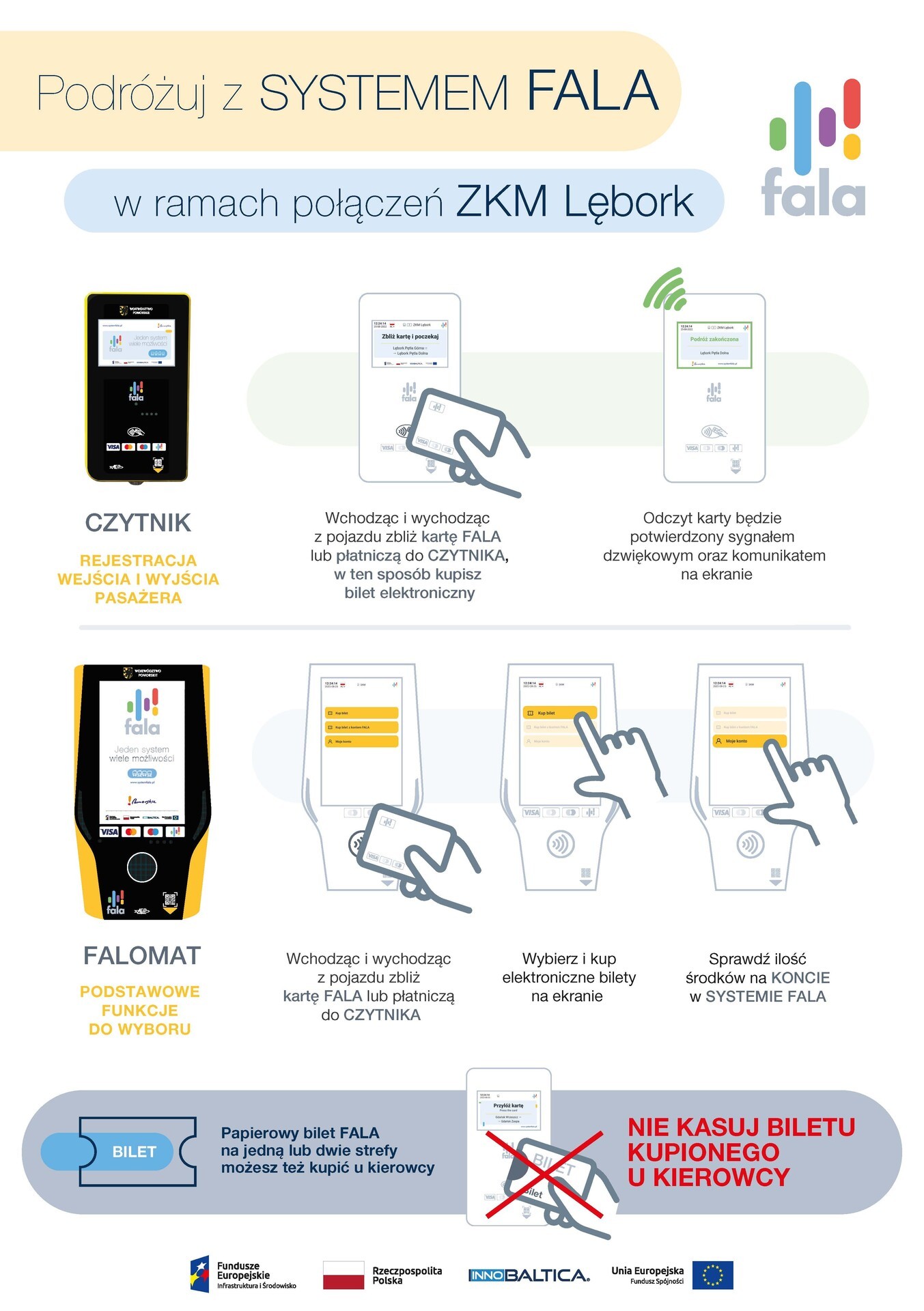 22 września 2023 r. w Lęborku w ramach tzw. publicznego rozruchu ruszył system biletowy FALA. Od dzisiaj mieszkańcy mogą podróżować autobusami Zakładu Komunikacji Miejskiej na wszystkich liniach z wykorzystaniem kart FALA lub własnych kart bankowych.