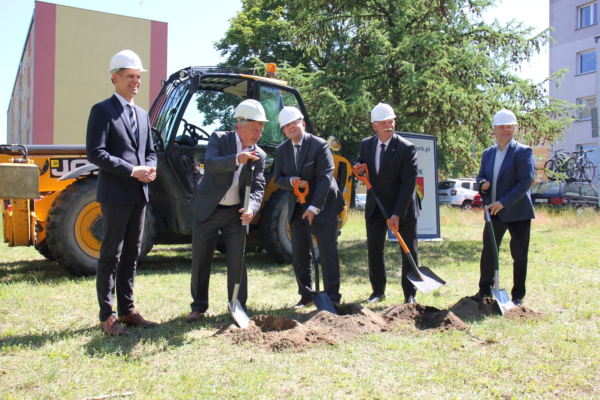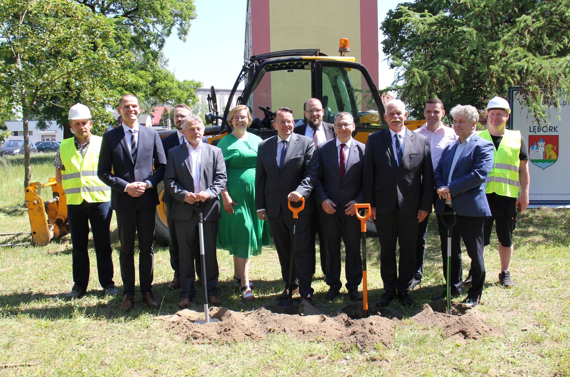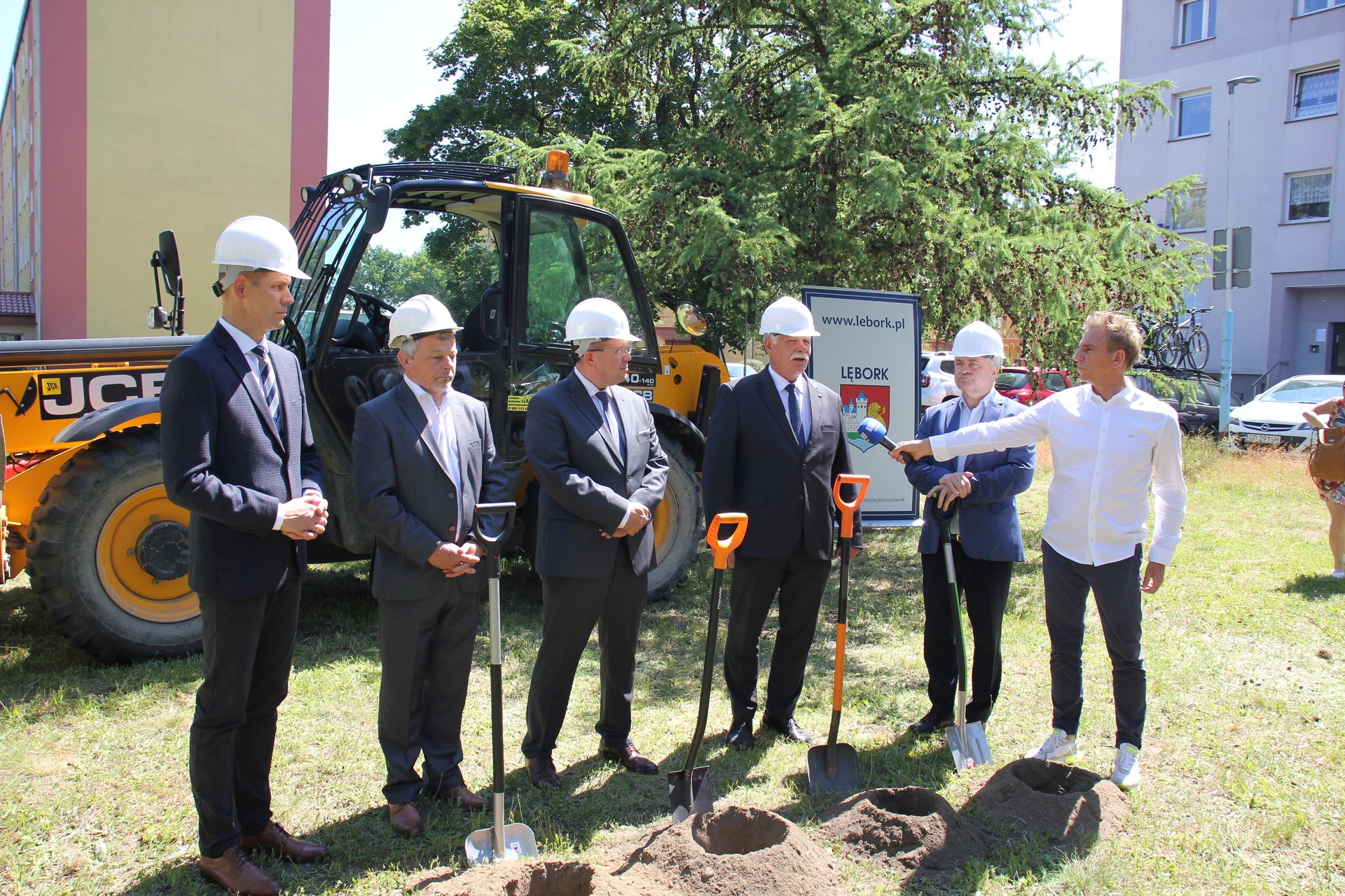 Na działce Skarbu Państwa przy ulicy Obrońców Wybrzeża przekazanej miastu Lęborkowi przez Krajowy Zasób Nieruchomości odbyło się dziś symboliczne rozpoczęcie budowy tanich mieszkań dla 40 rodzin. Pretekstem do zwołania konferencji prasowej na miejscu budowy był fakt, że Lębork jest pierwszą miejscowością w Polsce w której ruszyła budowa mieszkań w ramach nowego Programu Wspierania Społecznego Budownictwa Czynszowego.