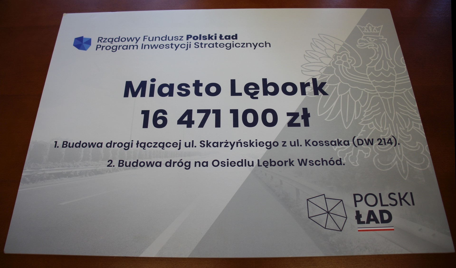 Miasto Lębork otrzymało promesę inwestycyjną o wartości 16 mln 471 tys. 100 złotych z Programu Inwestycji Strategicznych – Rządowy Fundusz Polski Ład. W ramach przyznanych środków w Lęborku zostaną wykonane dwie duże inwestycje drogowe.