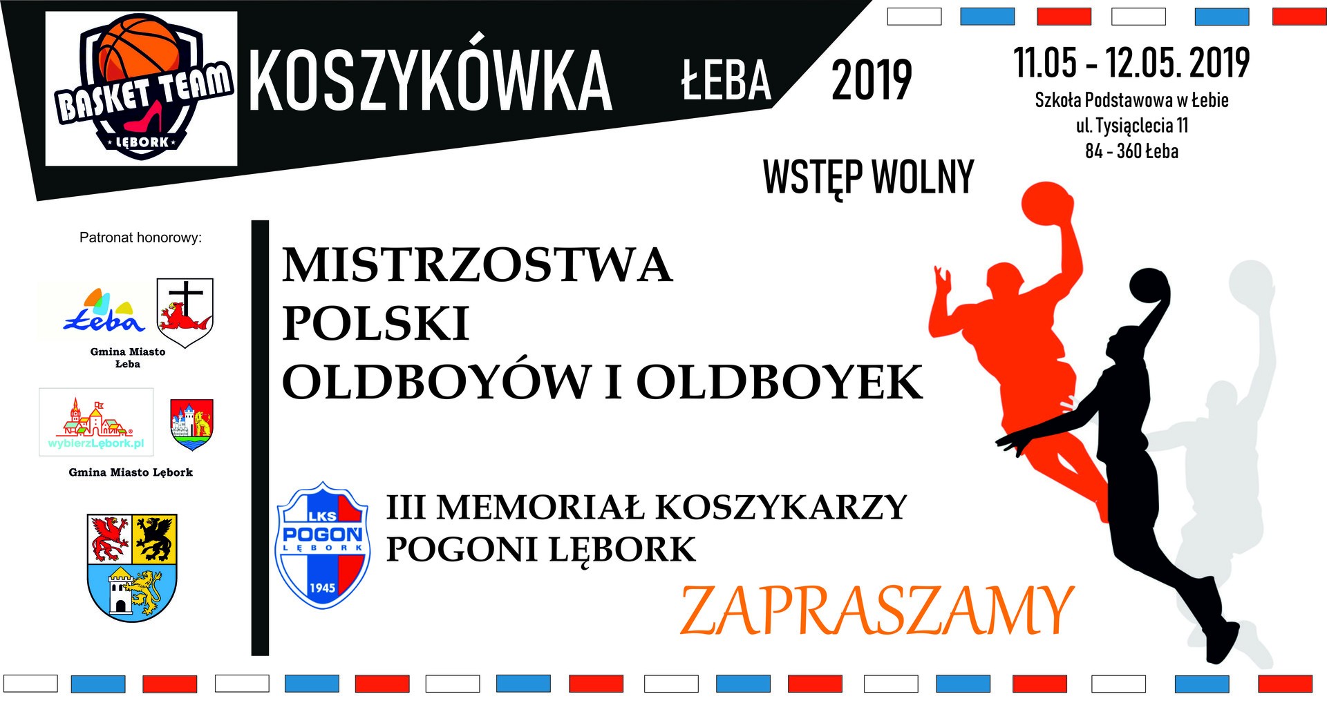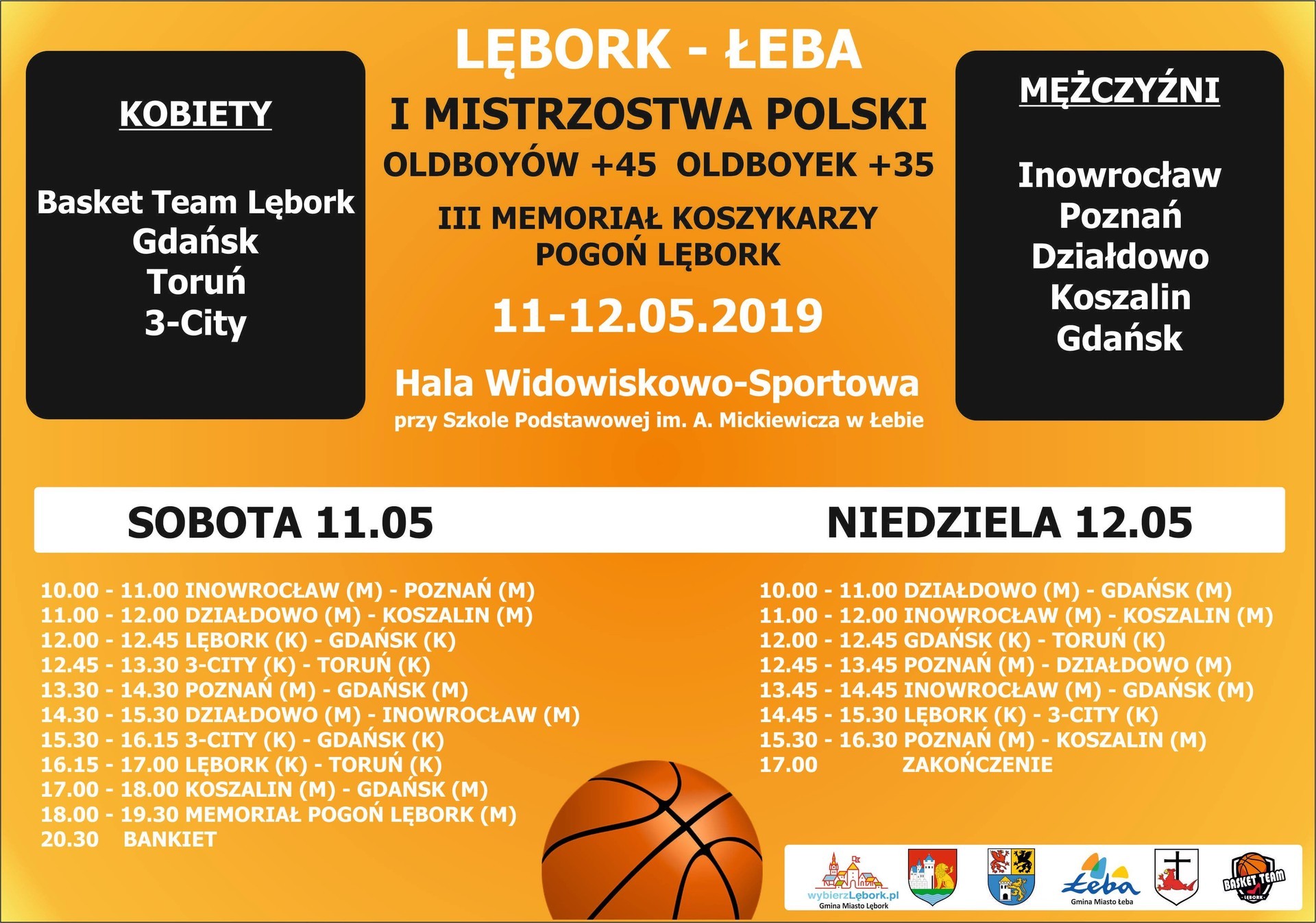 W dniach 11-12 maja 2019 roku w Hali Sportowo- Widowiskowej przy Szkole Podstawowej im. A. Mickiewicza w Łebie ul. Tysiąclecia 11 odbędą się I Mistrzostwa Polski Oldboyów i Oldboyek. W męskiej kategorii 45+ zaprezentuje się pięć zespołów. O zwycięstwo powalczą reprezentanci Poznania, Koszalina, Inowrocławia, Gdańska i Działdowa. Wśród kobiet zobaczymy między innymi gospodynie turnieju – drużynę Basket Team Lębork oraz reprezentantki Gdańska, Torunia i 3city. Turniej będzie rozgrywany systemem „każdy z każdym”, który zagwarantuje równe szanse wszystkim zespołom a duża ilość rozegranych meczów, będzie doskonałą okazją dla kibiców na spędzenie weekendu z koszykówką.