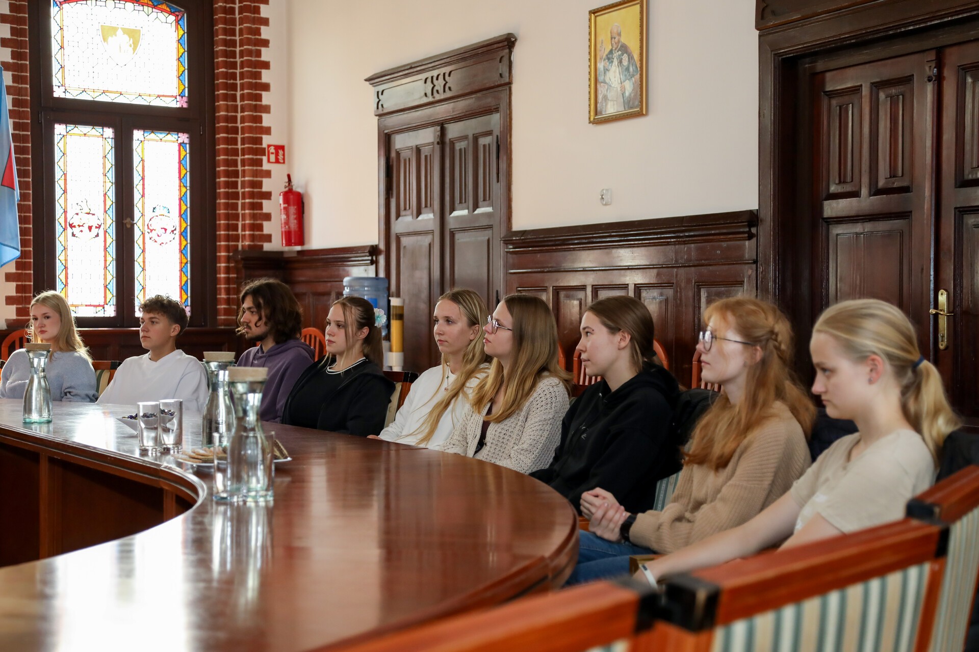 Ratusz w Lęborku odwiedzili uczniowie Społecznego Liceum Ogólnokształcącego – uczestnicy projektu „Młodzi Ambasadorzy Edukacji Obywatelskiej”. Wraz z nauczycielem-opiekunem Karoliną Wysocką młodzież poznała kulisy pracy samorządu i urzędu, a także odwiedziła Urząd Stanu Cywilnego i skarbiec.