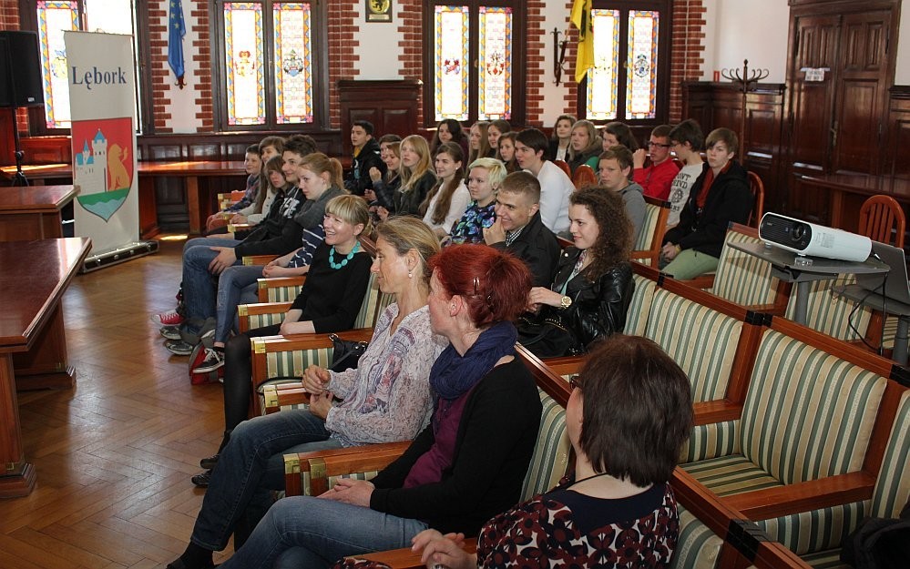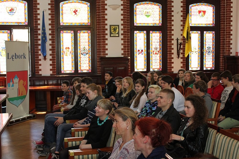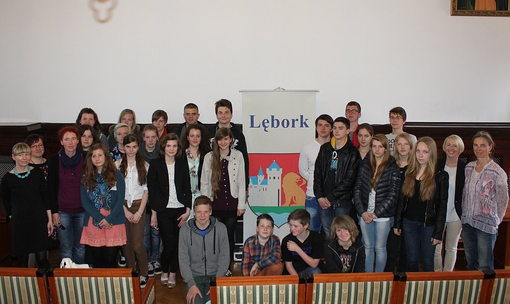15 maja br. Urząd Miejski odwiedziła grupa uczniów z niemieckiego miasta Stralsund, która przebywała w Lęborku w ramach współpracy ze Społecznym Gimnazjum Językowym. Uczniowie ze Stralsundu w towarzystwie uczniów lęborskiego SGJ wraz z opiekunami zostali powitani w ratuszu przez Burmistrza Miasta, Witolda Namyślaka. Dalszą część spotkania poprowadziła p. Alicja Zajączkowska, Zastępca Burmistrza Miasta. Uczniowie otrzymali foldery informacyjne na temat naszego miasta oraz zwiedzili skarbiec.
