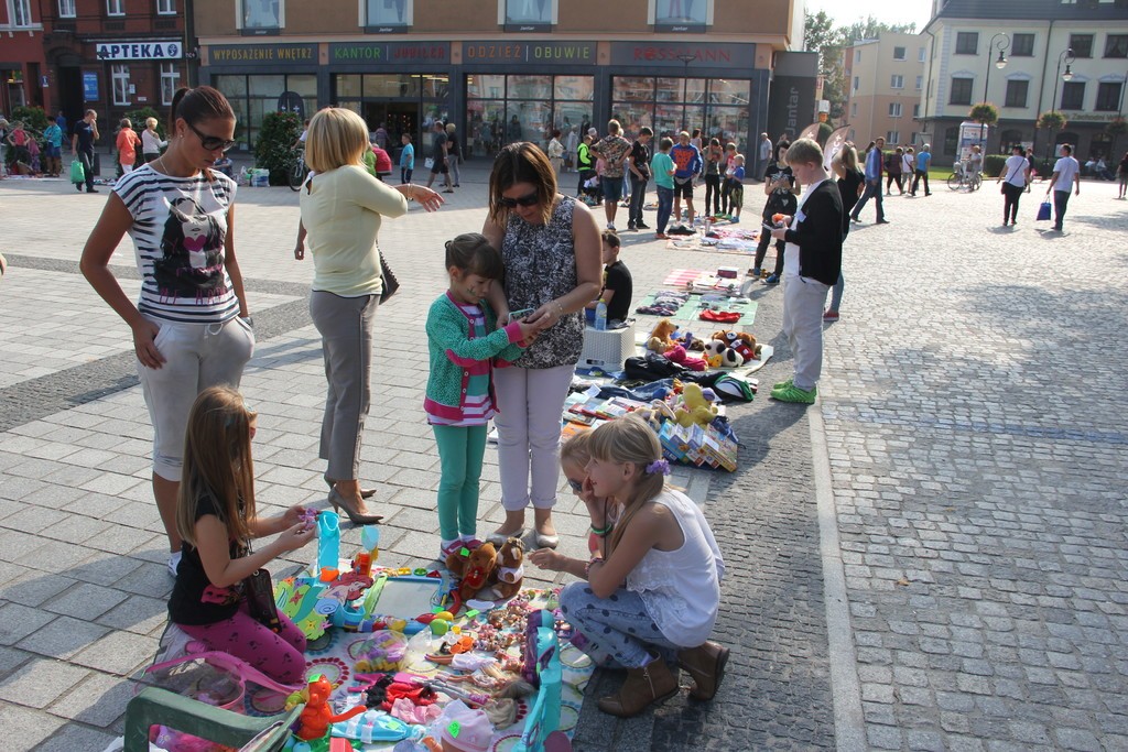 Tego dnia najmłodsi mogli za parę groszy odsprzedać, wymienić lub oddać rówieśnikom swoje przedmioty, zalegające w ich szafie. Od godziny 10-tej przychodzili rodzice ze swoimi pociechami, aby ich wpisać na listę uczestników. Wszystkie dzieci otrzymały od młodych radnych "oldskulowe" plany lekcji. Plac wypełniło 44 młodych wystawców wystawiających przeróżne przedmioty. A było tego sporo m.in. lalki Barbie, puzzle Monster High, książeczki z Kubusiem Puchatkiem, Pet shopy, kucyki Pony, podręczniki szkolne, maskotki i wiele innych. Przyjechali także goście z Białogardy, Nowej Wsi Lęborskiej, Łebuni a nawet Redy. W międzyczasie, przy fontannie, odbywał się miniturniej w szachy na specjalnych kamiennych stołach, które zostaną w tym miejscu już na stałe. Puchary i drobne upominki zwycięzcom wręczyli przedstawiciele Młodzieżowej Rady Miasta Lęborka.