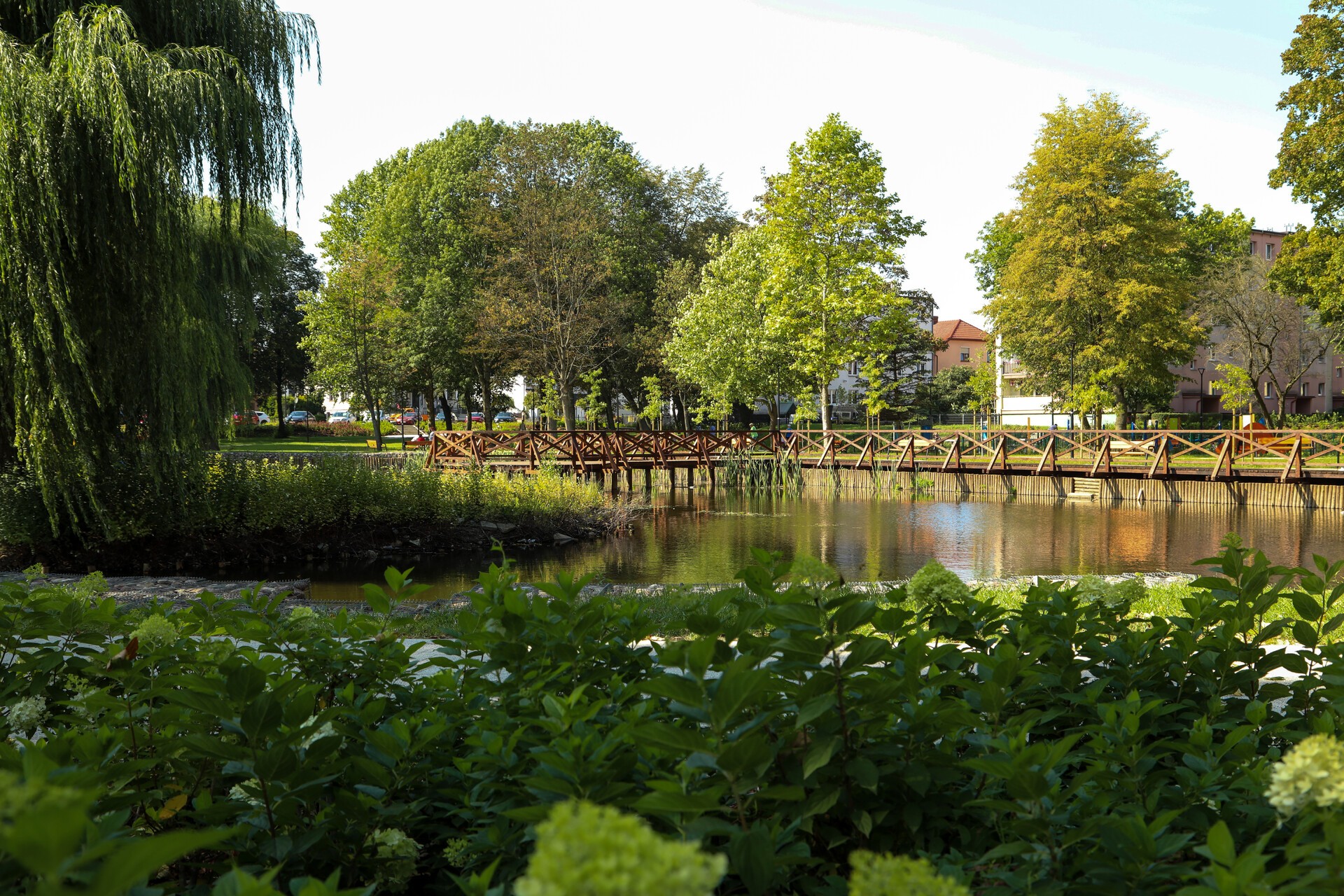 Zakres prac parku w zlokalizowanego pomiędzy ulicami Sienkiewicza a Bohaterów Monte Cassino obejmował m.in. budowę nabrzeża z balustradą, pomostu z platformą widokową, placu zabaw dla dzieci z bezpieczną nawierzchnią, strefy dla seniorów, budowę chodników i ścieżek oraz nasadzenia, drzew i niskiej zieleni. Przebudowano dojście w kierunku węzła przesiadkowego, które dzięki pochylni stało się dostępne dla osób z niepełnosprawnościami czy rodziców z wózkami dziecięcymi.