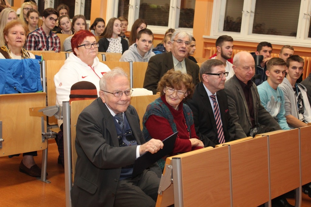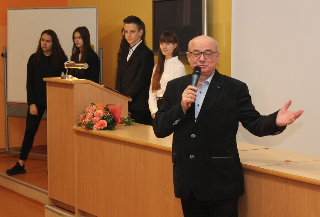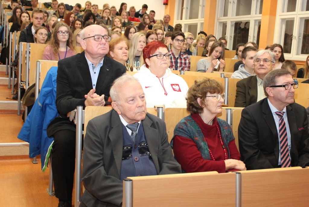 Gość uroczystości, prof. Andrzej Januszajtis przedstawił młodzieży swoją pasjonującą życiową historię związaną z II Rzeczpospolitą, II Wojną Światową i okresem powojennym. Ważną częścią barwnego wystąpienia był temat Westerplatte przedstawiony zarówno w kontekście historii wojskowej składnicy w gdańskim porcie jak i osobistych wyborów.