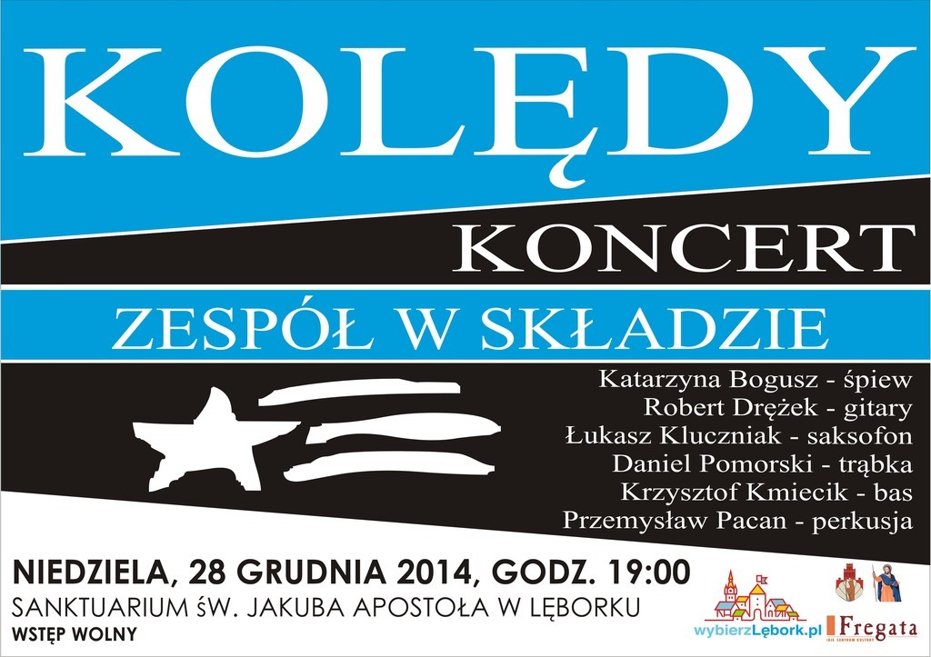 Lęborskie Centrum Kultury „Fregata” zaprasza na koncert kolęd w wykonaniu ZESPOŁU W SKŁADZIE. Grupę tworzą członkowie czołowych wykonawców polskiej sceny muzycznej, między innymi: Luxtorpedy, Armii, Happysad, Deus Meus czy 2TM2,3. Koncert odbędzie się w niedzielę, 28 grudnia 2014, w Sanktuarium Św. Jakuba Apostoła w Lęborku. Początek o godzinie 19.00. Wstęp wolny.