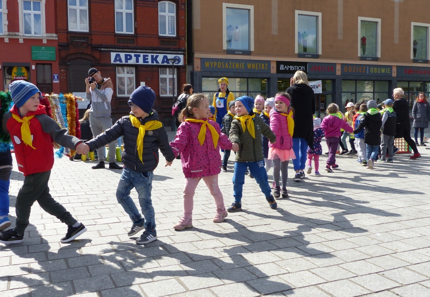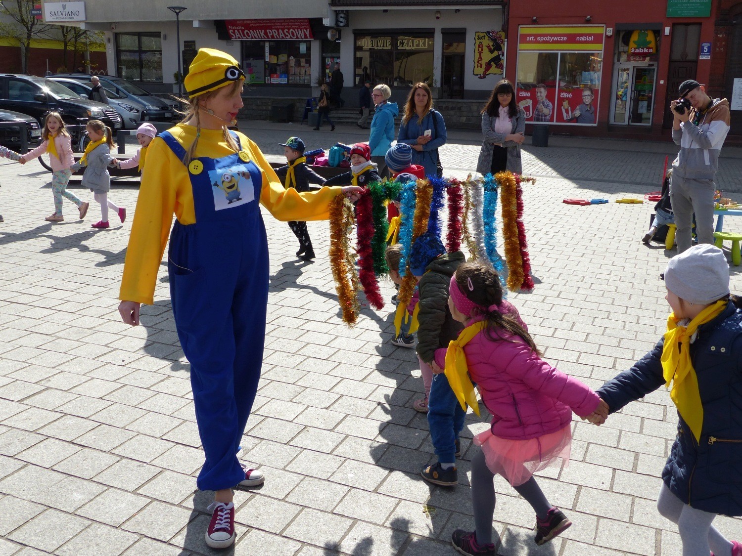 „Kolorowe Podwórka” to akcja Miejskiej Biblioteki Publicznej w Lęborku w ramach promocji oferty biblioteki dla najmłodszych czytelników. 7 i 8 maja na placu Pokoju pod hasłem „Mamo, tato zapisz mnie do biblioteki” w grach, zabawach i animacjach uczestniczą dzieci w wieku przedszkolnym z lęborskich placówek i nie tylko. Do harców maluchów zapraszają animatorki z Akademii Zabawy Przygoda, które wcielają się w postaci ze znanej bajki MINIONKI.