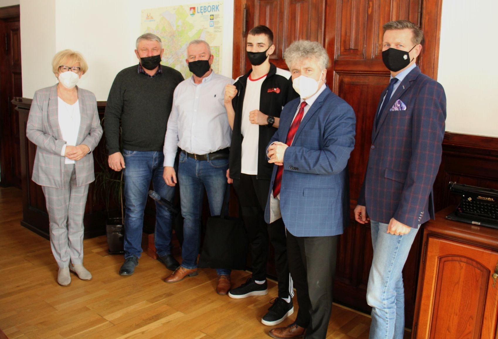 Gości przyjął burmistrz Witold Namyślak, zastępca burmistrza Teresa Ossowska-Szara oraz sekretarz miasta Marian Kurzydło. Burmistrz Lęborka pogratulował sukcesów, podziękował za promocje miasta na bokserskiej gali i podczas telewizyjnej transmisji oraz życzył powodzenia w zaplanowanych na czerwiec br. Mistrzostwach Polski Juniorów.