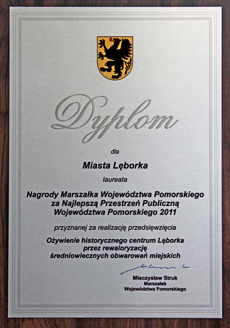 W tegorocznej edycji konkursu na „Najlepszą Przestrzeń Publiczną Województwa Pomorskiego 2011" organizowanego przez Zarząd Województwa Pomorskiego, za najlepszą przestrzeń publiczną w województwie komisja konkursowa uznała lęborskie przedsięwzięcie pn. „Ożywienie historycznego centrum Lęborka przez rewaloryzację średniowiecznych obwarowań miejskich".