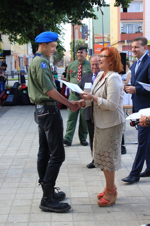 W piątek na Placu Pokoju w Lęborku, podczas uroczystego apelu, Burmistrz Miasta Witold Namyślak uhonorował instruktorów drużynowych Związku Harcerstwa Polskiego nagrodami rzeczowymi.