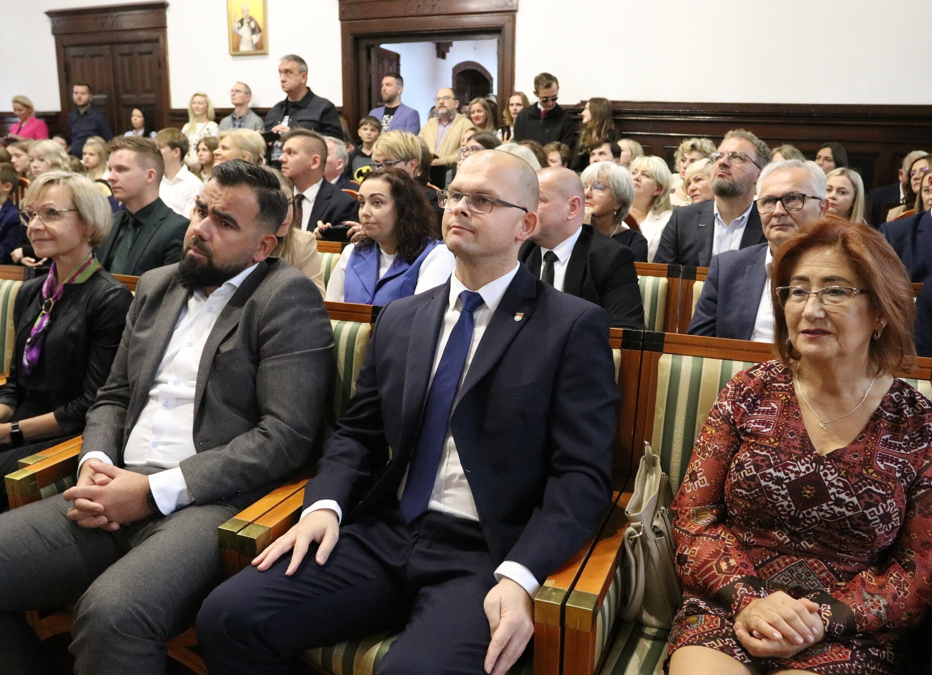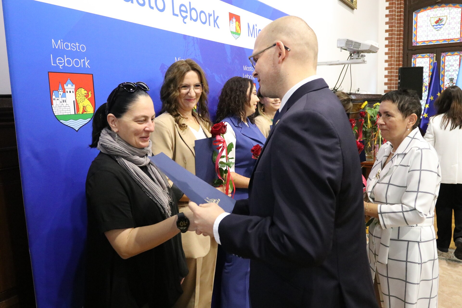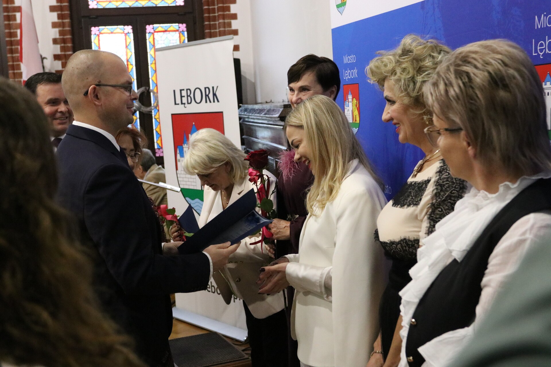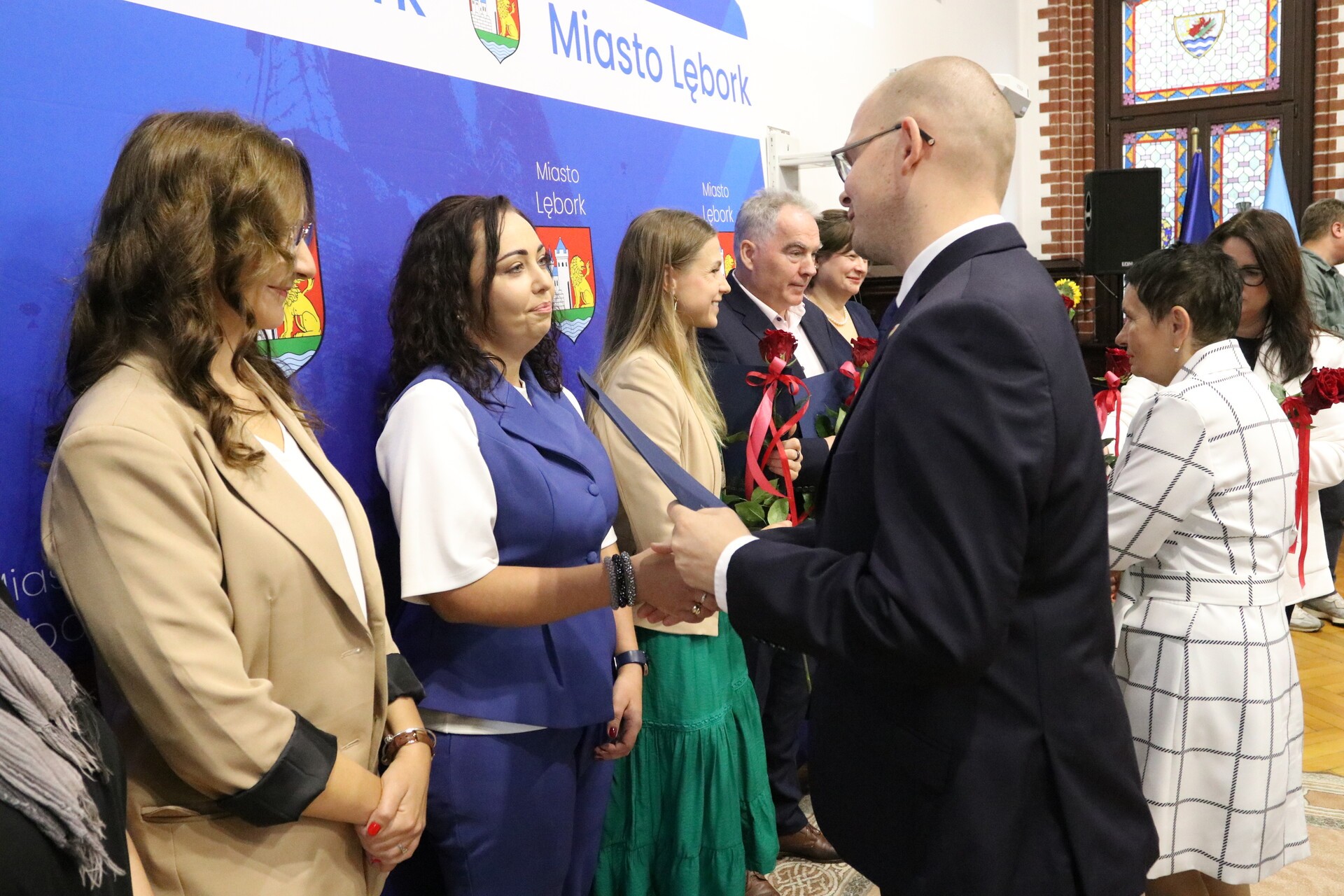 Sala Rajców Urzędu Miejskiego w Lęborku zgromadziła we wtorek 14 października 2025 r. dyrektorów, nauczycieli, uczniów i pracowników oświaty na miejskich obchodach Dnia Edukacji Narodowej. Z zaproszenia gospodarza uroczystości, burmistrza Miasta Jarosława Litwina, skorzystali starosta lęborski Tomasz Litwin, wiceprzewodnicząca Rady Miejskiej Halina Łukian wraz z radnymi Rady Miejskiej. Władze Kuratorium Oświaty w Gdańsku reprezentowała st. wizytator Beata Sobańska – Zając z Delegatury w Słupsku. Związek Nauczycielstwa Polskiego reprezentowany był przez Halinę Ługowską – Siłkę, prezes Oddziału w Lęborku. Uroczystość była wyrazem uznania dla pracy wszystkich osób zaangażowanych w rozwój edukacji w Lęborku – od nauczycieli i dyrektorów po uczniów i ich opiekunów.